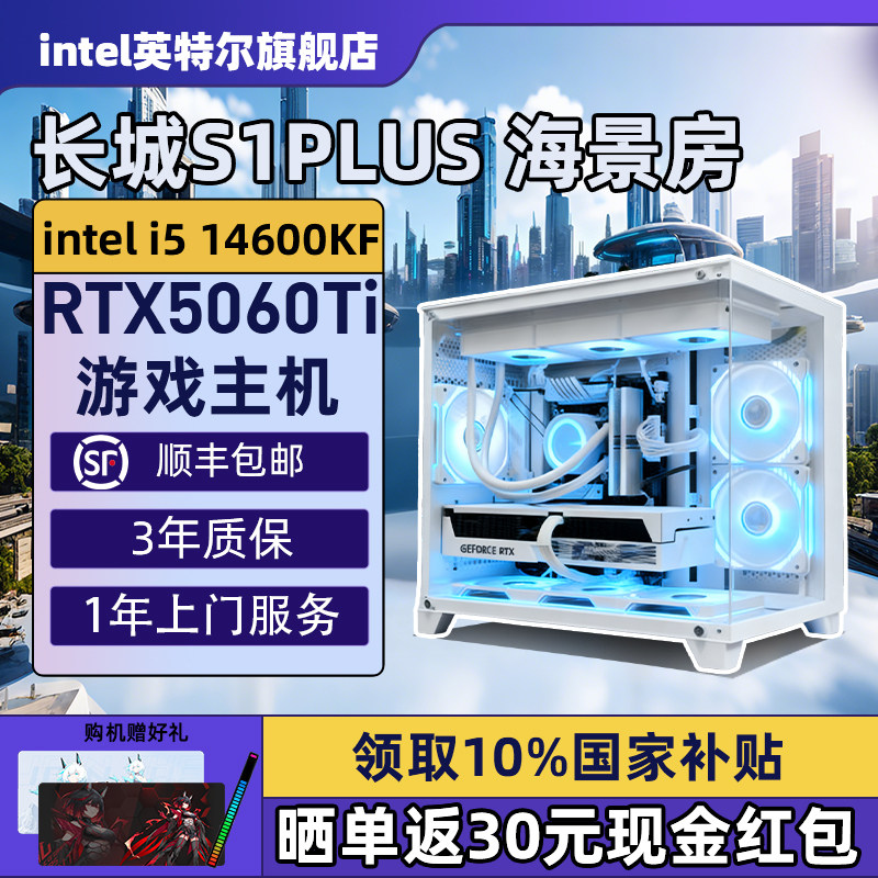 【Intel旗舰】长城白色海景房DIY主机台式组装三角洲行动游戏电脑整机245K/14600KF/14700KF/5070Ti/5060Ti