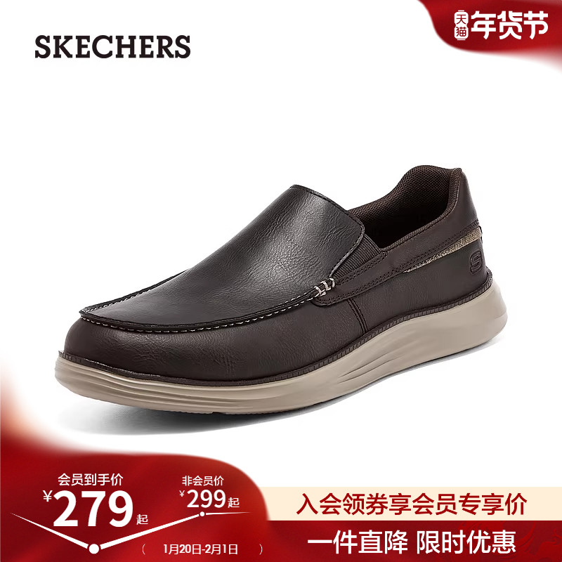 斯凯奇秋冬新款男子舒适休闲皮鞋商务鞋通勤鞋德比鞋软底上班板鞋
