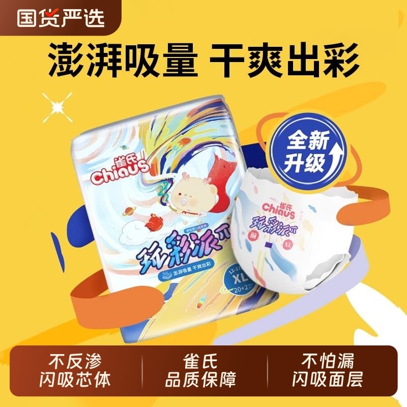 雀氏玩彩派纸尿裤拉拉裤婴儿超薄透气宝宝学步裤婴幼儿尿不湿正品