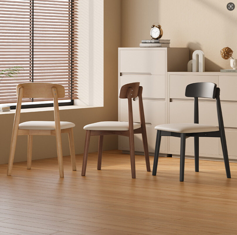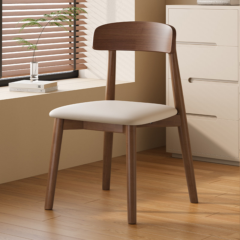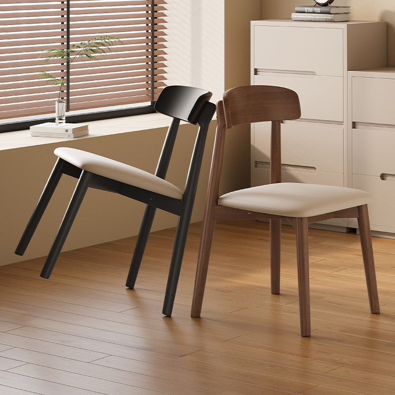 实木餐椅家用餐厅餐桌椅子2025新款软包靠背椅木头中古风吃饭凳子