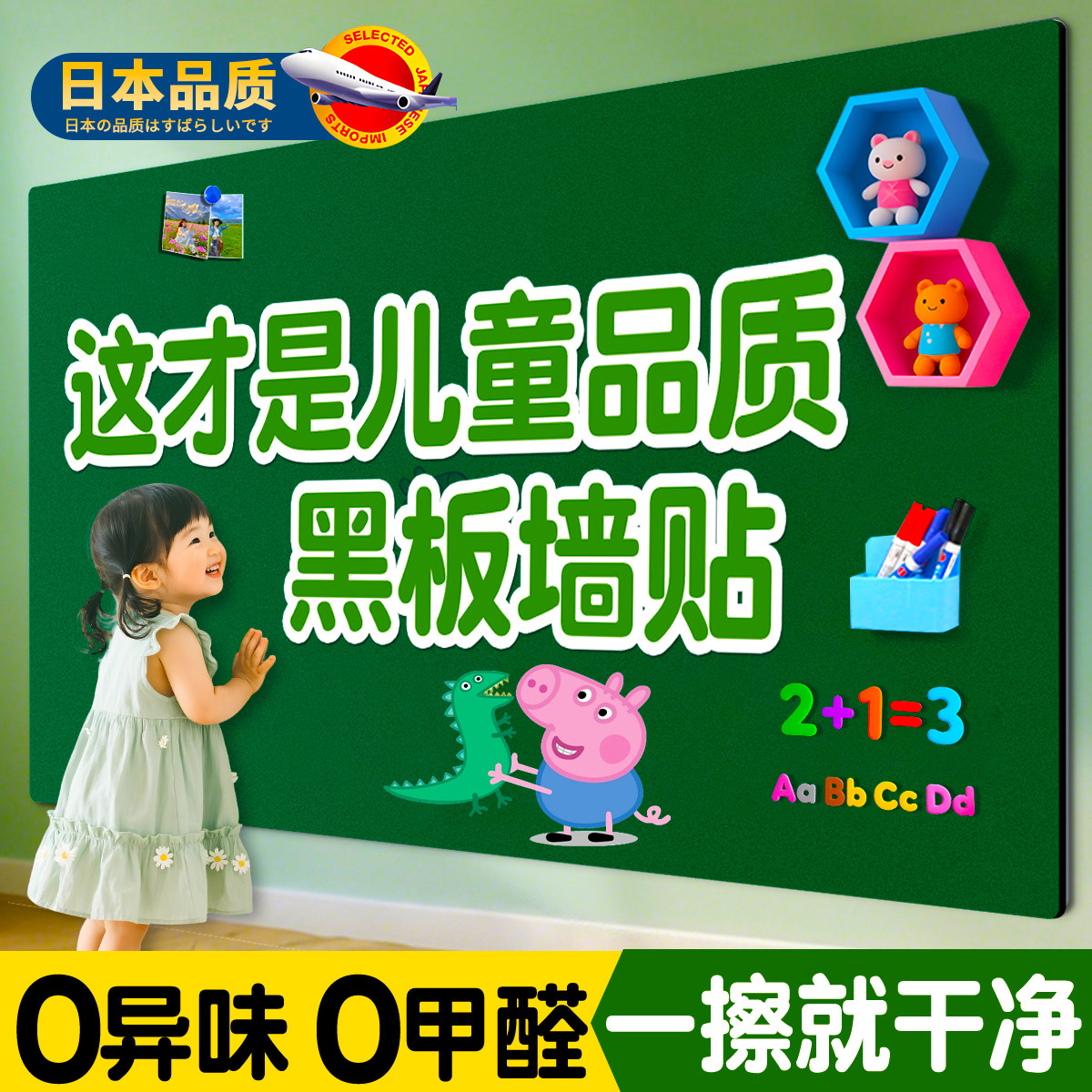 日本品质黑板墙贴儿童家用教学可移除磁性不伤墙白板家庭可擦写字板涂鸦板贴墙面上磁力贴纸无尘粉笔书写画板