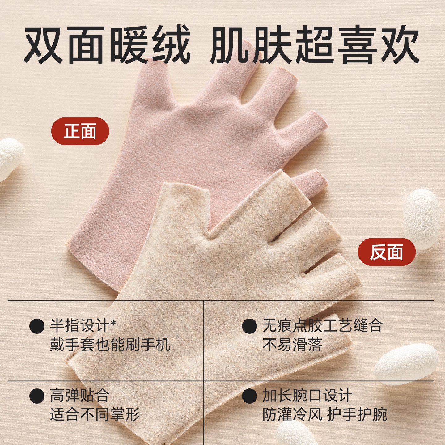 保暖手套半指女发热羊毛蚕丝秋冬露指学生男写字打字新款五指办公