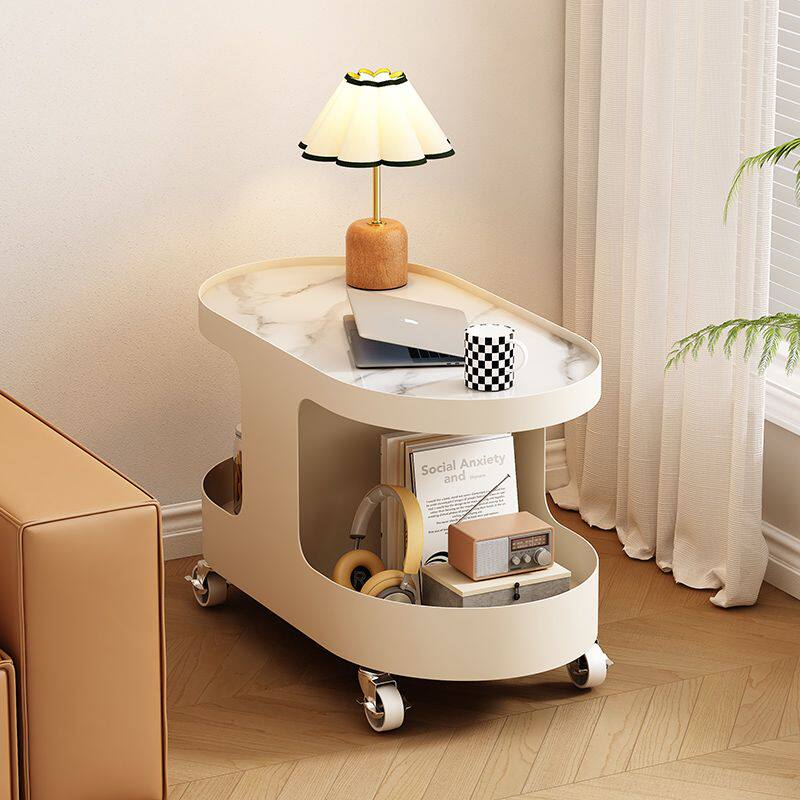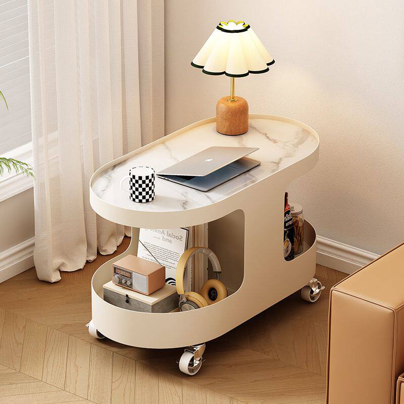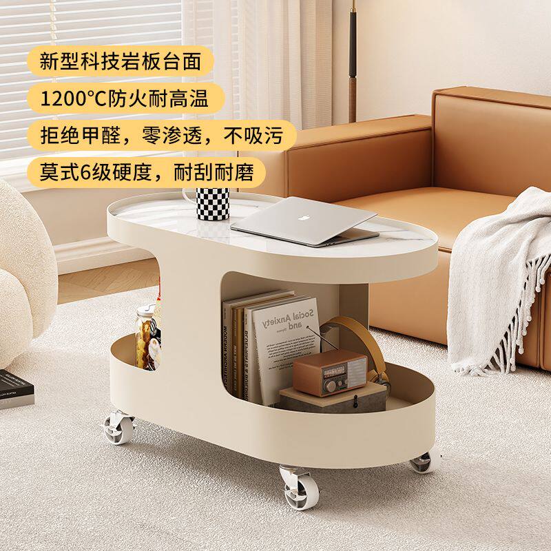 c2024带轮奶油风边几客厅茶几小户型爆款沙发边柜可移动新款小桌