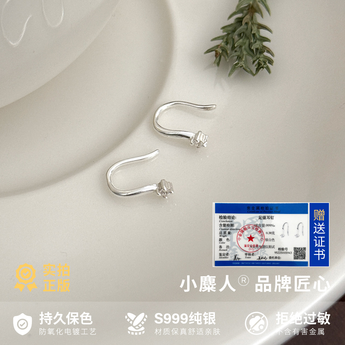小麋人「」耳钉纯银999水滴女耳环耳饰气质高级感2025爆款夏足银