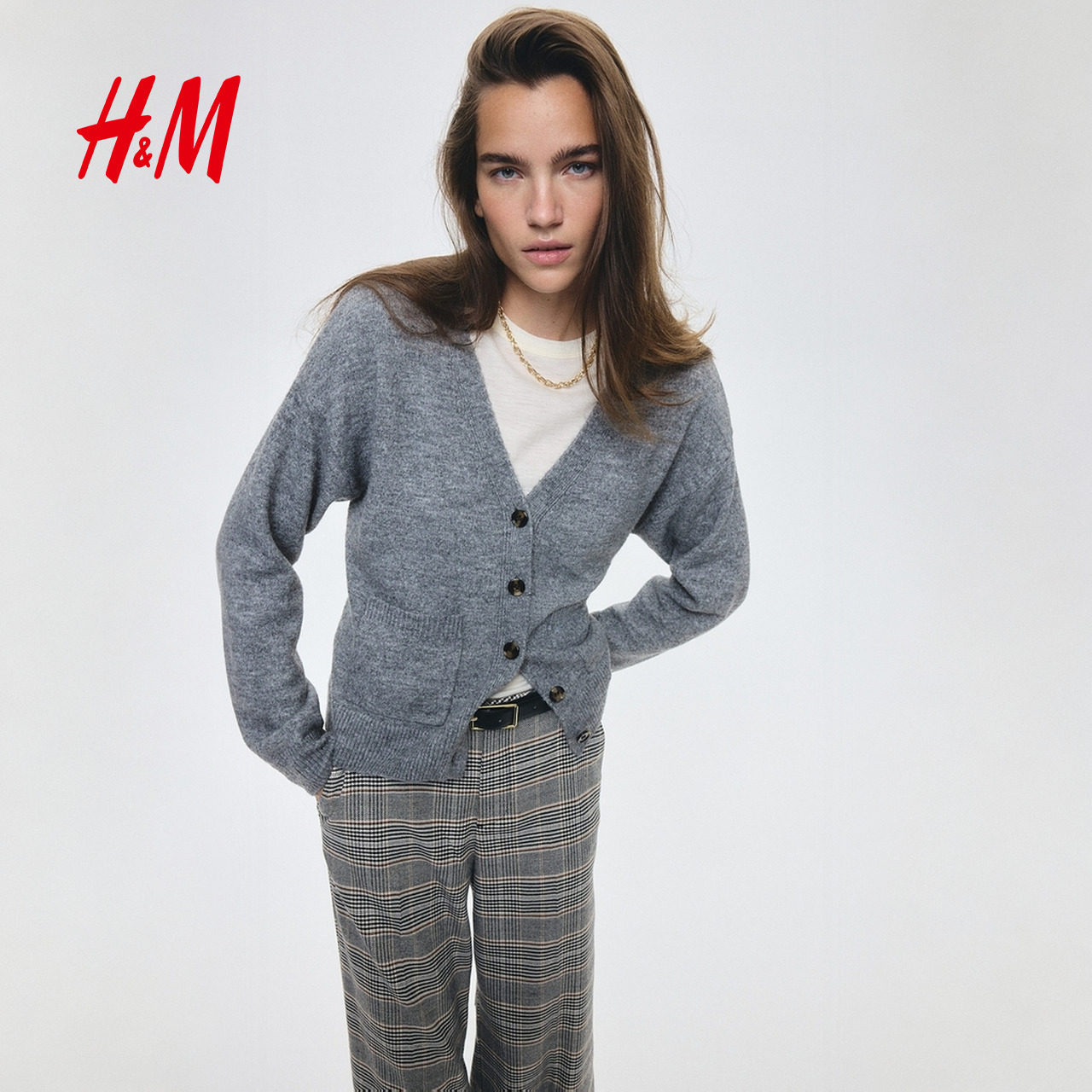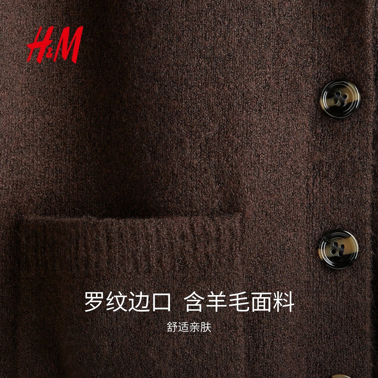 HM女装毛针织衫2025年新款宽松落肩长袖开衫外套打底衫1301240