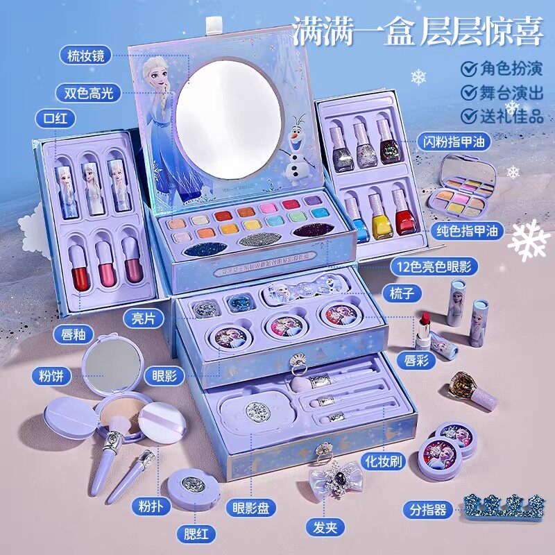 迪士尼正版授权艾莎儿童化妆品彩妆套装女孩子生日礼物无毒可水洗