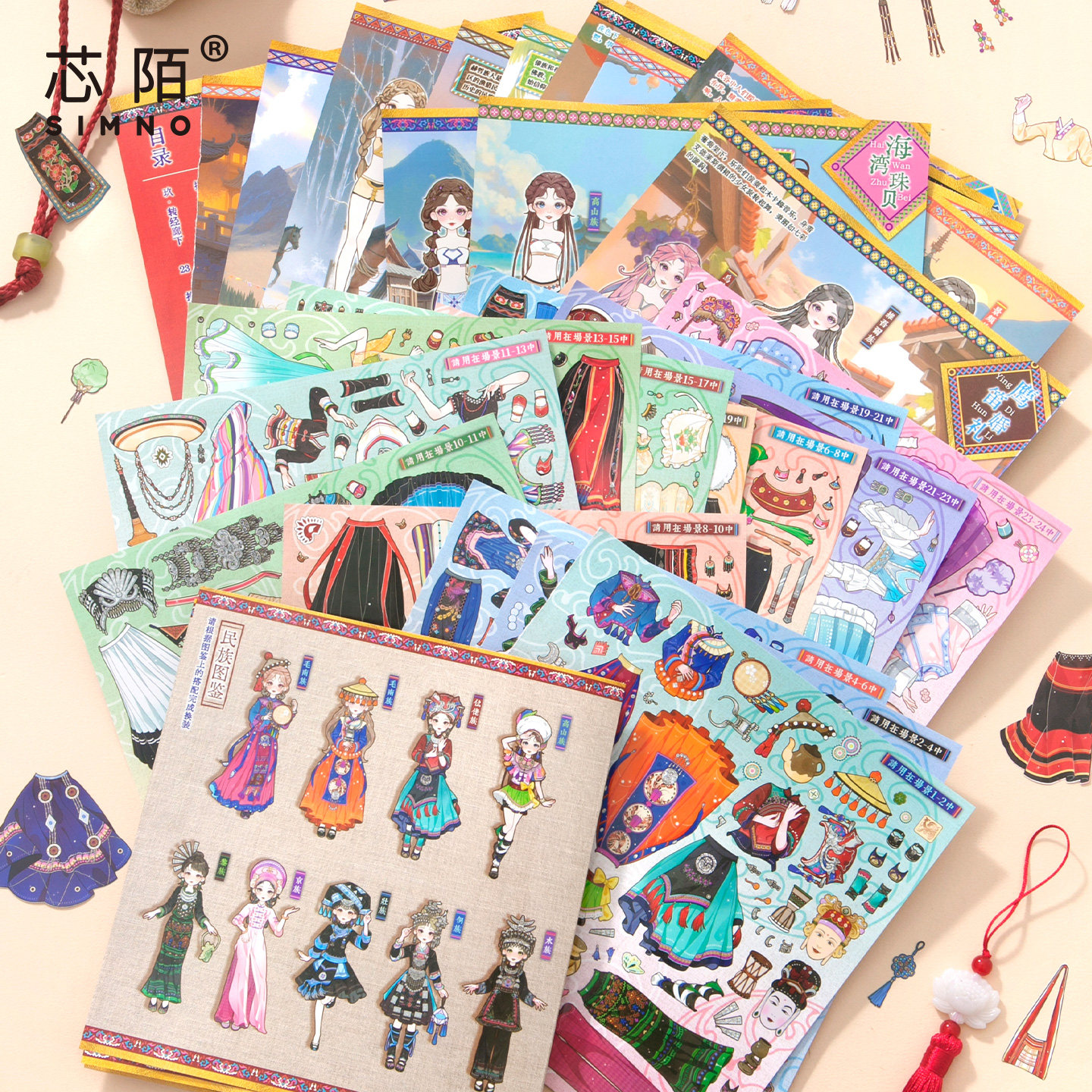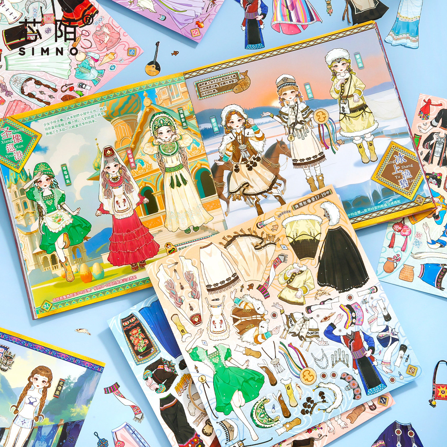 少女换装册腐蚀刀10.0新款民族风可爱少女换装贴纸本儿童高颜值ins风玩具女孩卡通人物diy手帐公主换装贴纸书