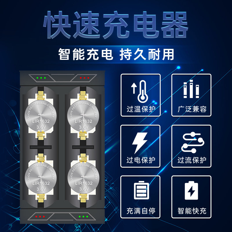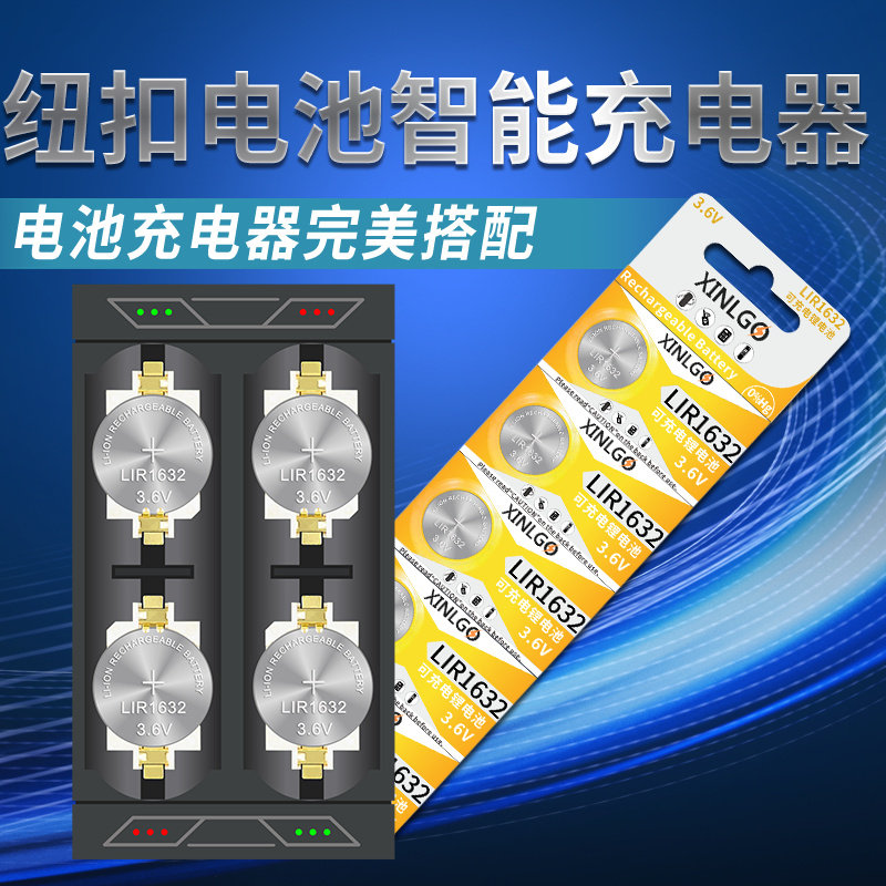 原装LIR1632可充电纽扣电池3.6V锂电子汽车钥匙遥控器LIR1620智能充电器代替CR1620/1632防盗器