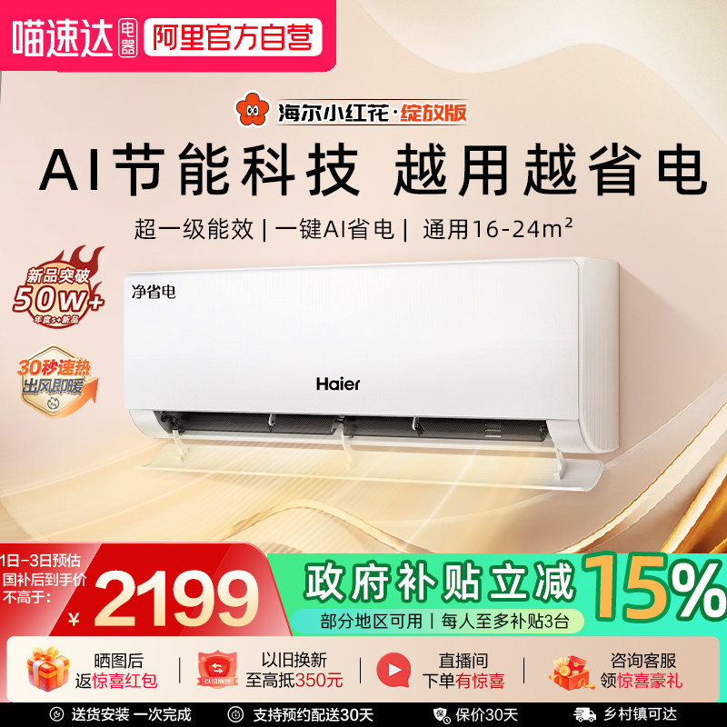 海尔小红花空调净省电官方新一级能效家用1.5匹变频冷暖挂机35E1