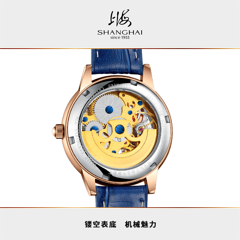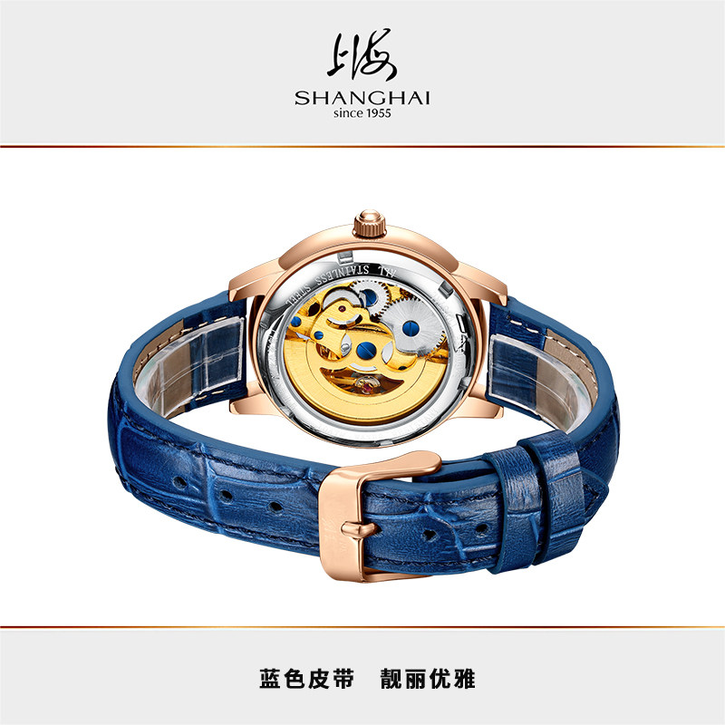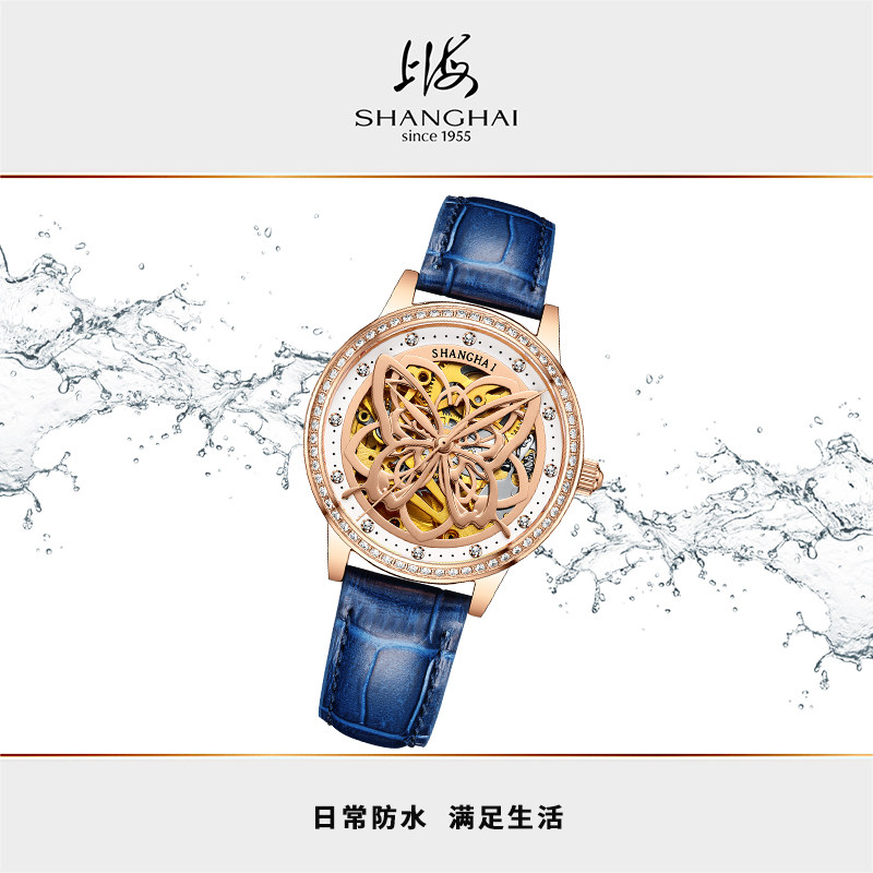 上海手表女款国民953蓝蝶恋花镶钻轻奢国风皮带机械表官方旗舰店