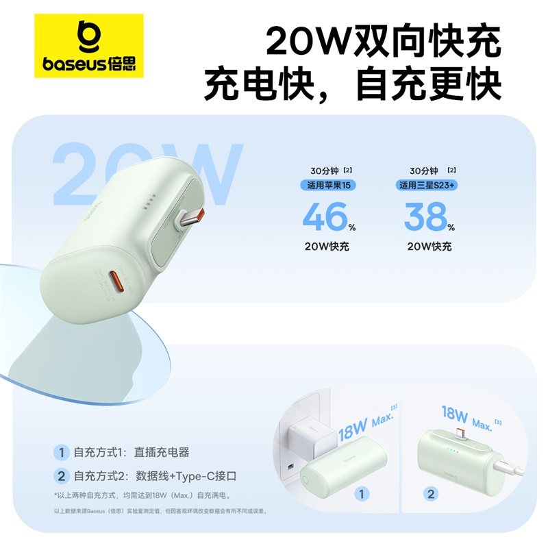 【3c认证充电宝】倍思尾插式充电宝便携式移动电源快充适用苹果16