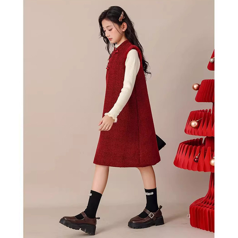 [保暖加厚]女童背心裙中国风裙子宝宝红色连衣裙小儿童冬季拜年服