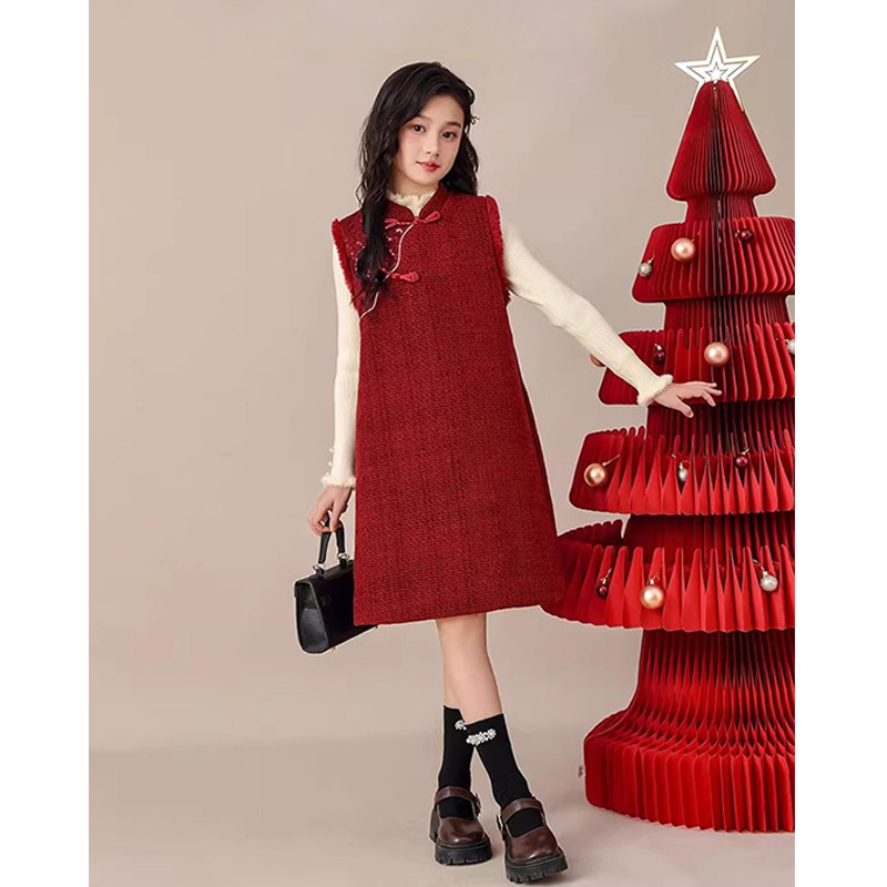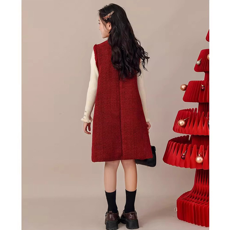 [保暖加厚]连衣裙女童红色小香风背心裙子大童深秋宝宝秋冬衣服