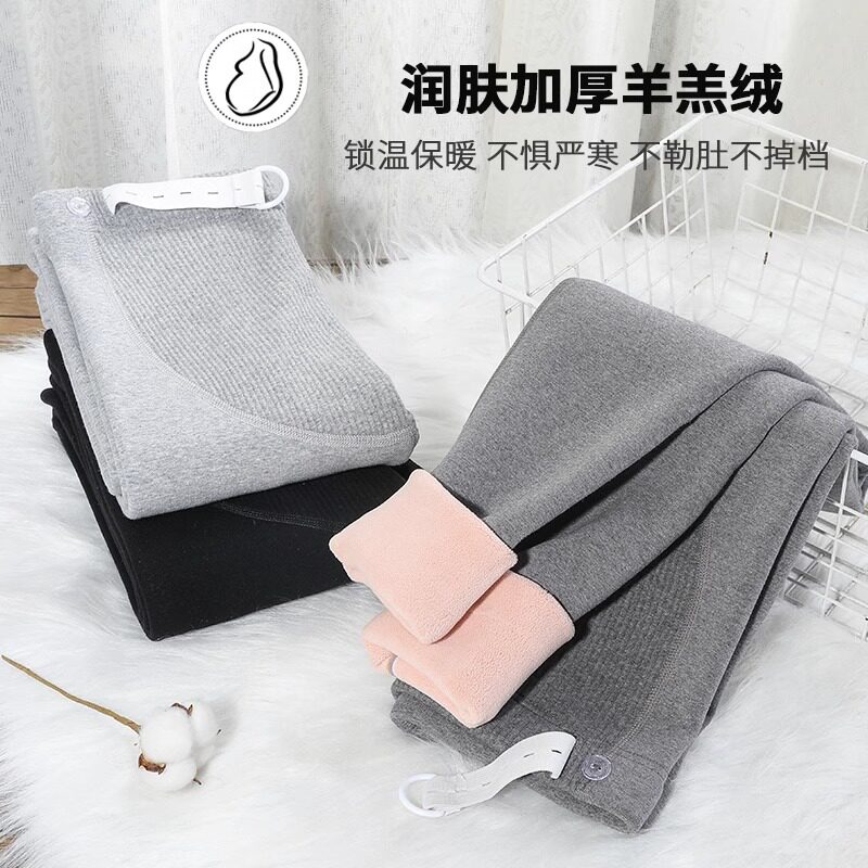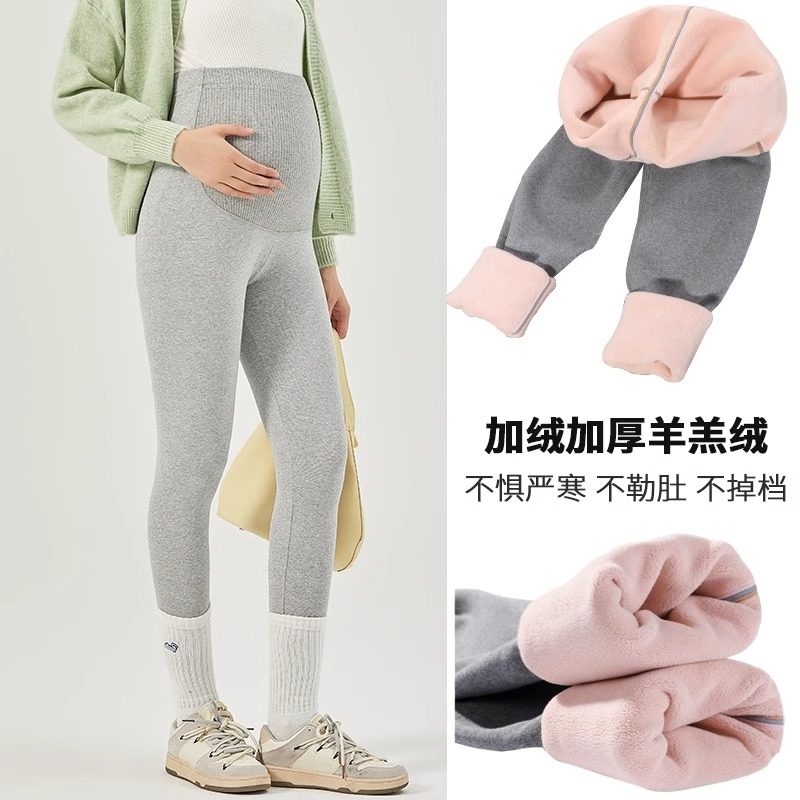 婧麒孕妇打底裤秋冬款外穿东北羊羔绒棉裤不勒肚子保暖裤子孕妇装
