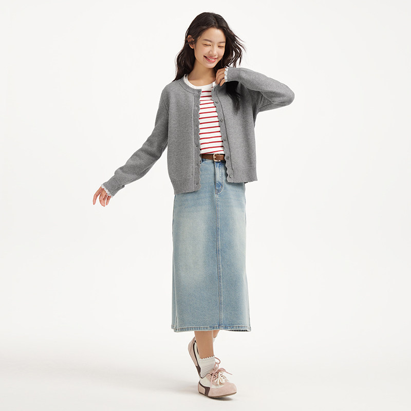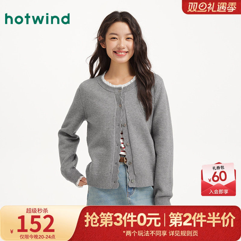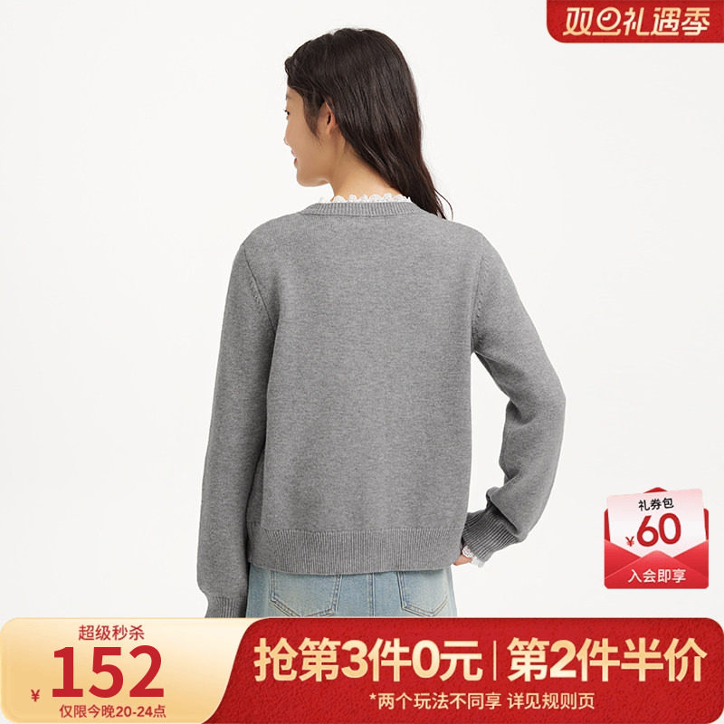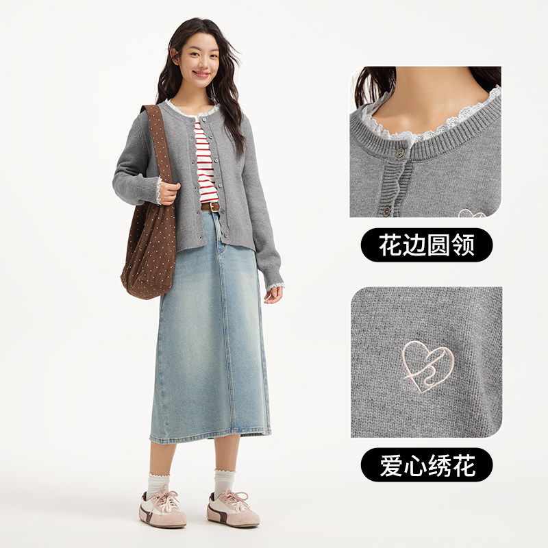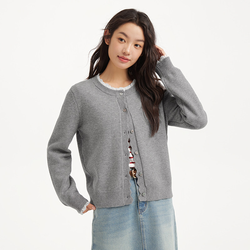 热风2025年冬季新款女士甜美花边针织开衫柔软亲肤温柔减龄