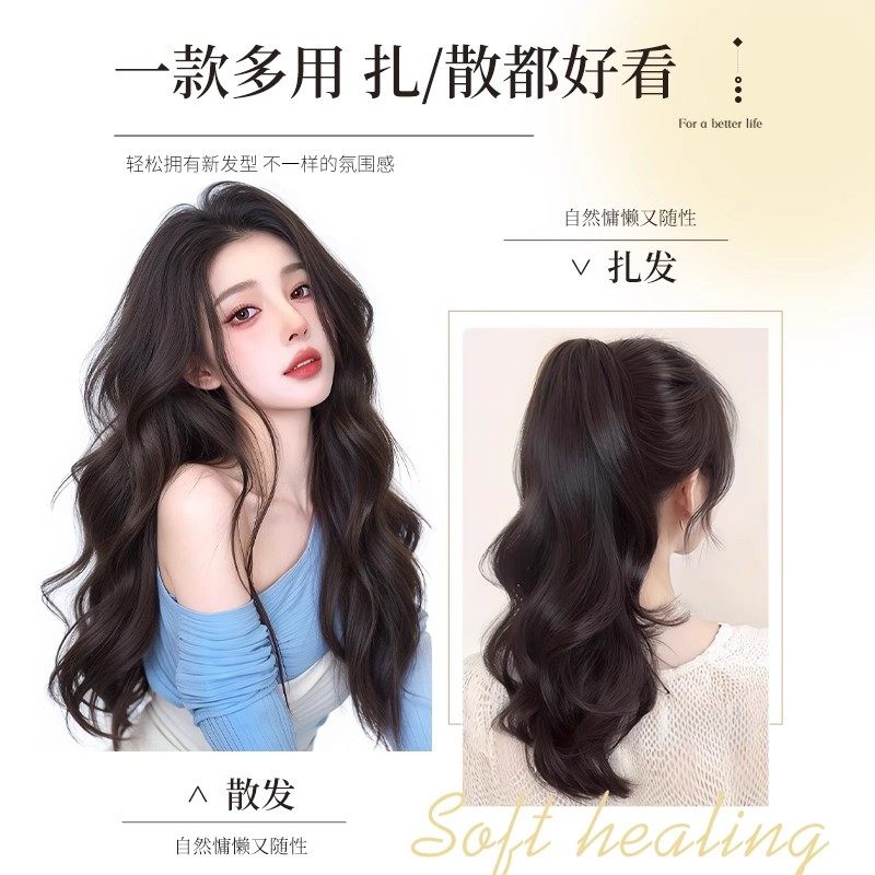 挂耳染发片卷发挑染假发片女一片式隐形彩色接发贴片蓬松漂染长发