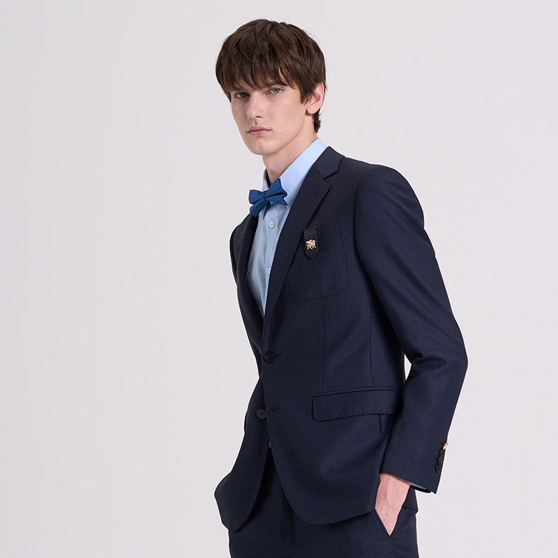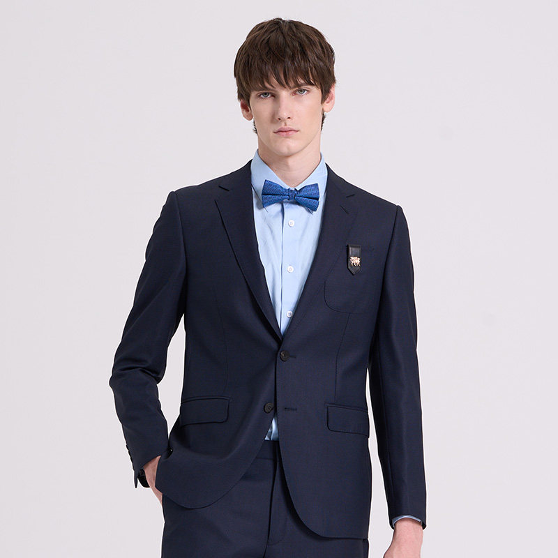 RARE威雅男装 秋冬新款藏青色羊毛提花西服外套西裤男士西装套装