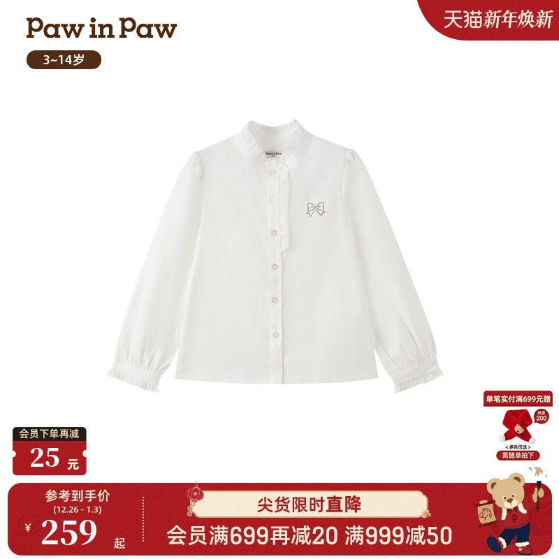 【天丝】PawinPaw卡通小熊童装25年冬季新款女童立领休闲衬衫