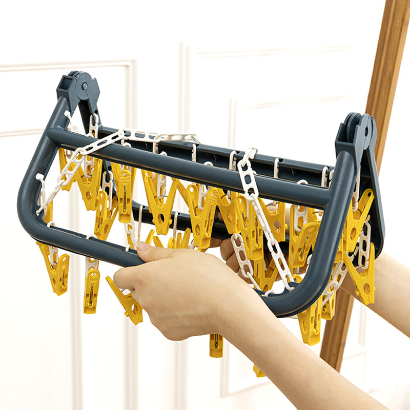 家用多功能夹子宿舍内晾袜子衣架折叠多夹子防风晾晒架神器