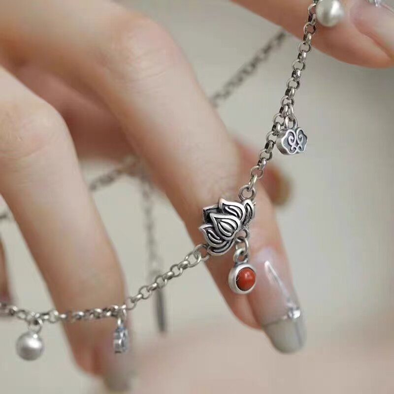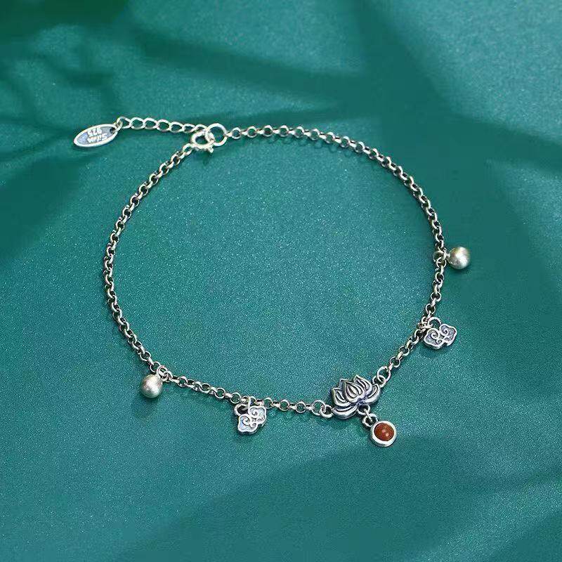 复古新中式步步生莲花脚链女流苏高颜值民族风高级感小众女士脚链