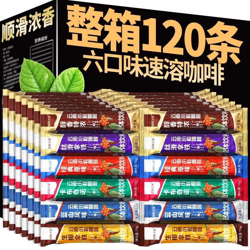 120条云南三合一速溶咖啡粉小粒黑咖啡特浓生椰拿铁蓝山风味条装