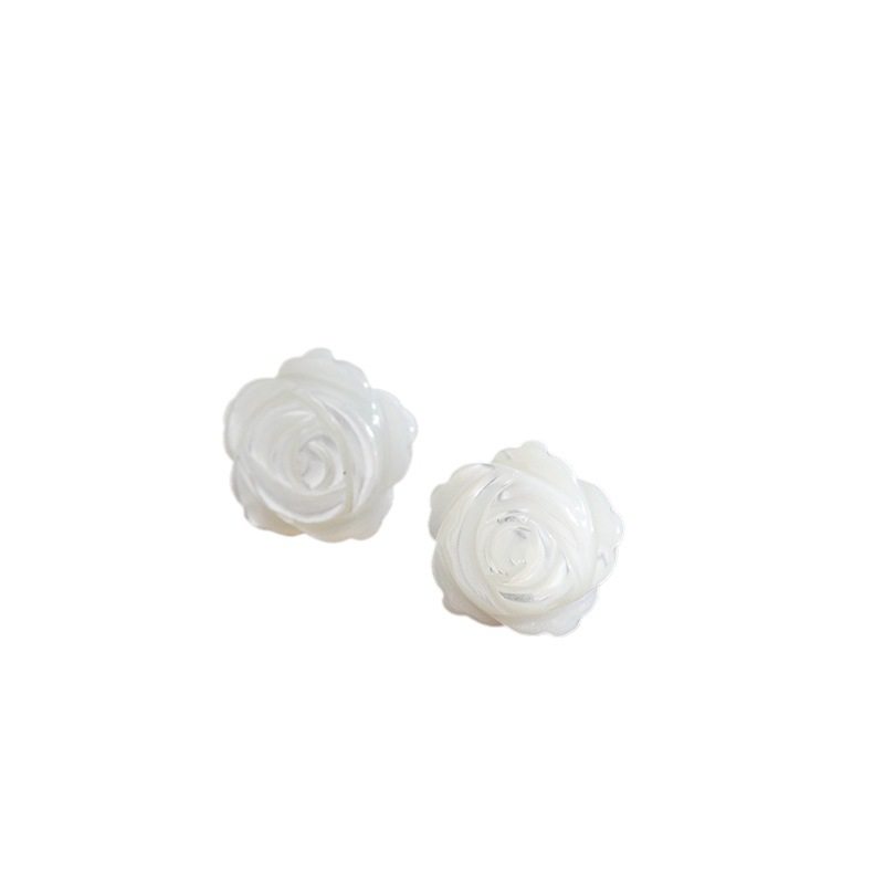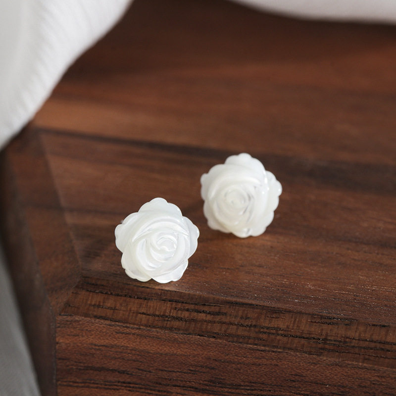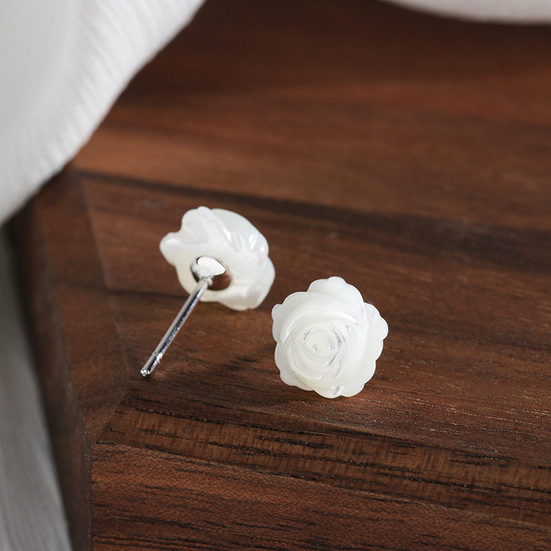 s925纯银白贝壳山茶花耳钉小巧精致女日常佩戴淑女小清新学生养耳