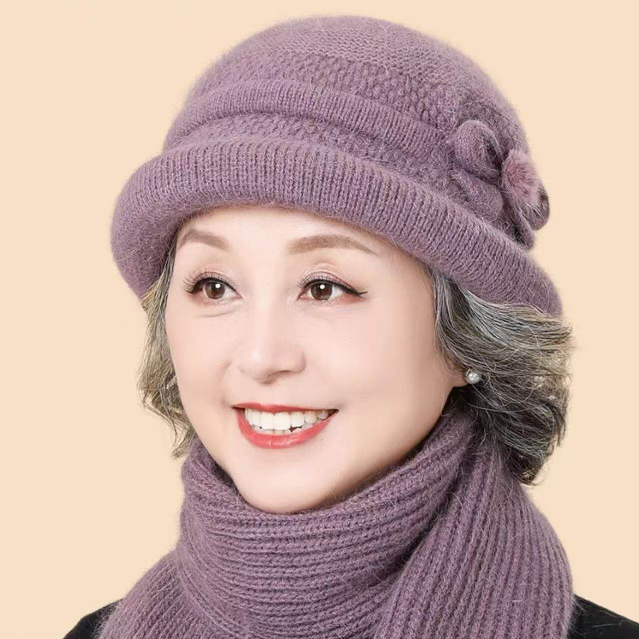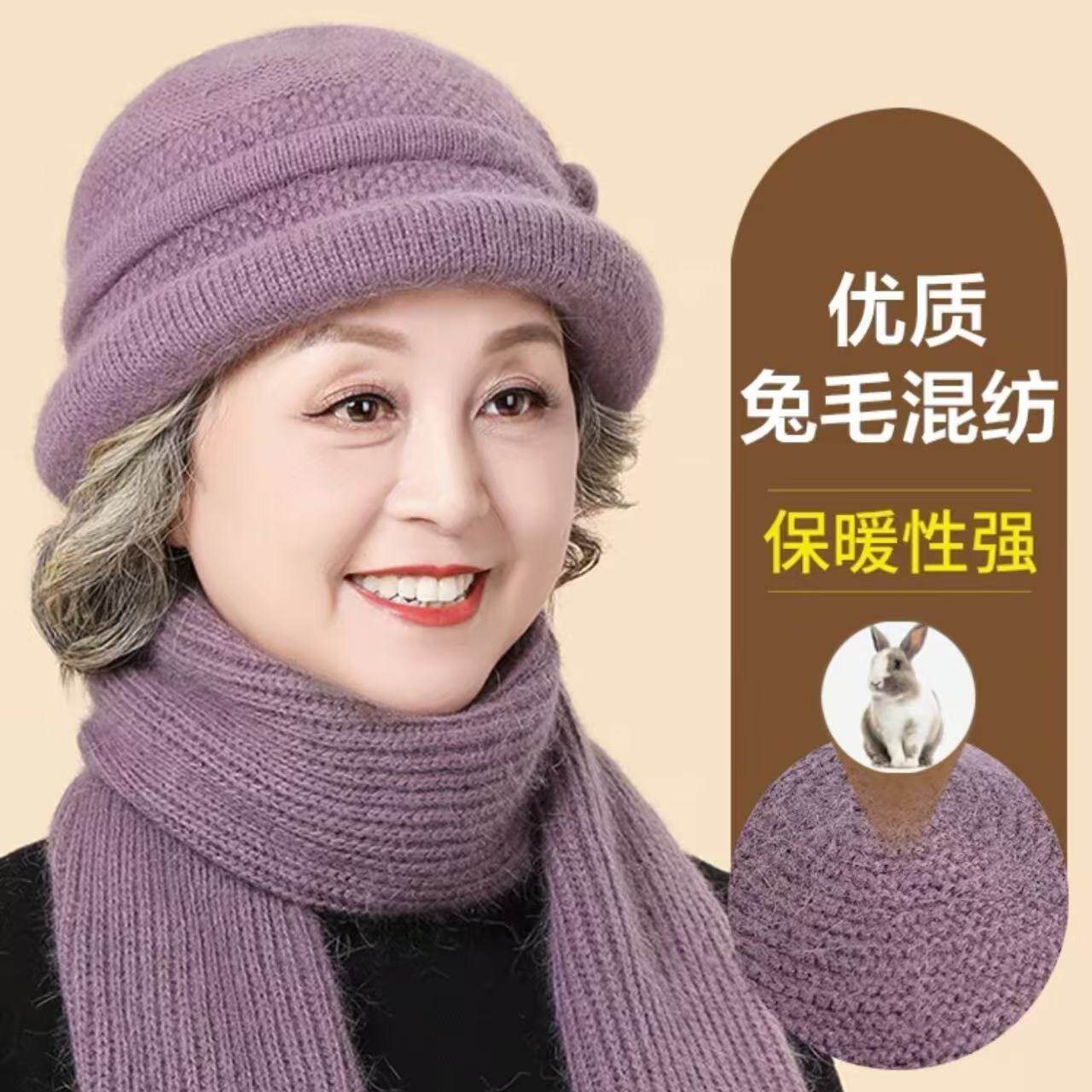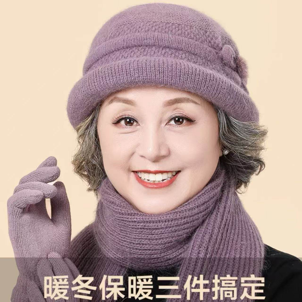 中年妈妈帽子女冬季加绒保暖毛线帽中老年人奶奶姥姥老人棉帽围巾