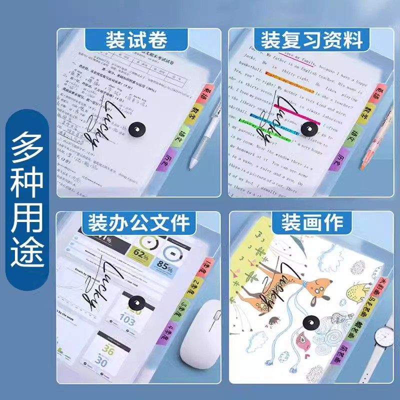 a4文件袋多层文件夹小学生用透明试卷收纳袋整理神器初中高中生大容量书夹子分类试卷夹卷子资料册风琴包开学
