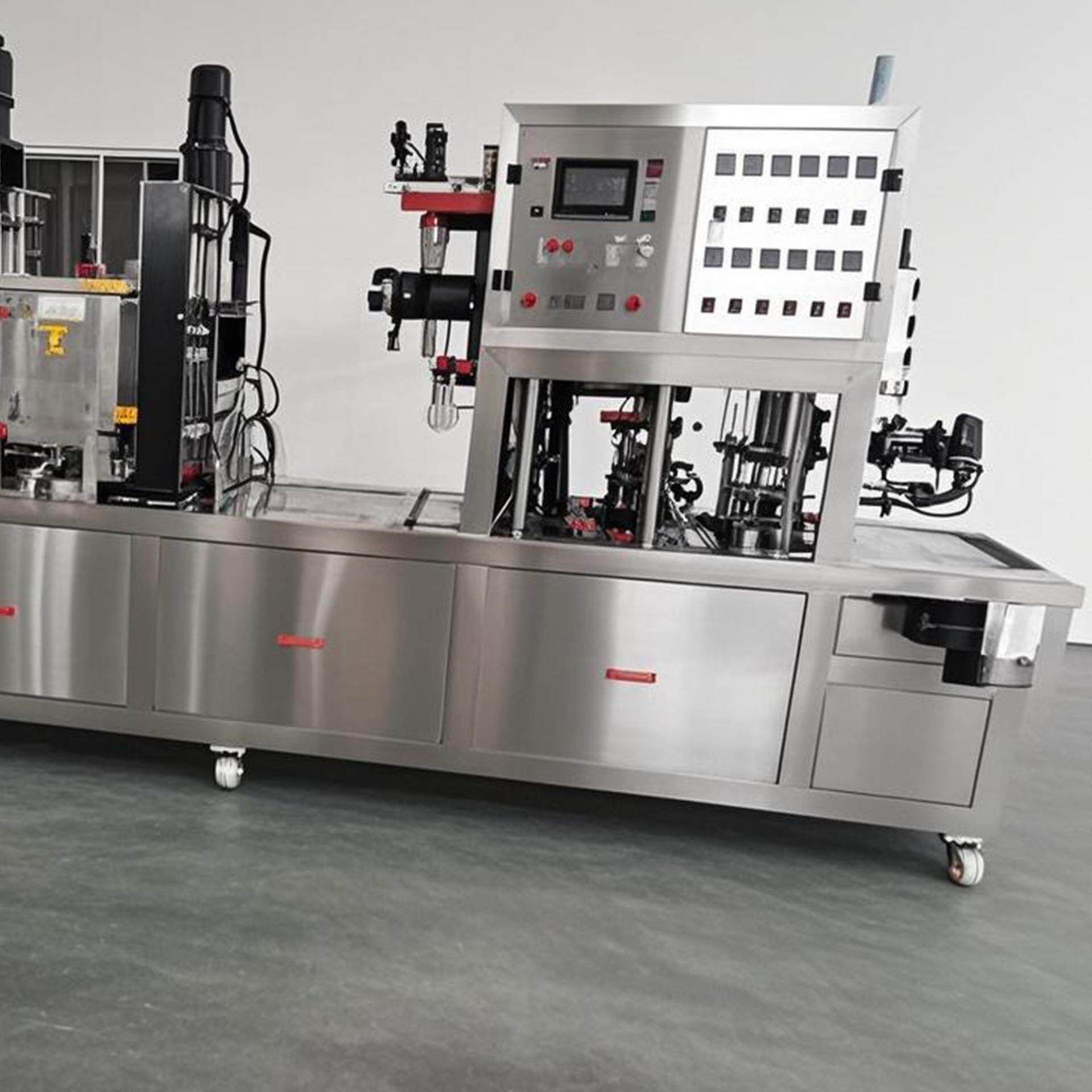 江西理工直线式全自动酸奶灌装封口机果冻酱米酒封杯机全自动灌装