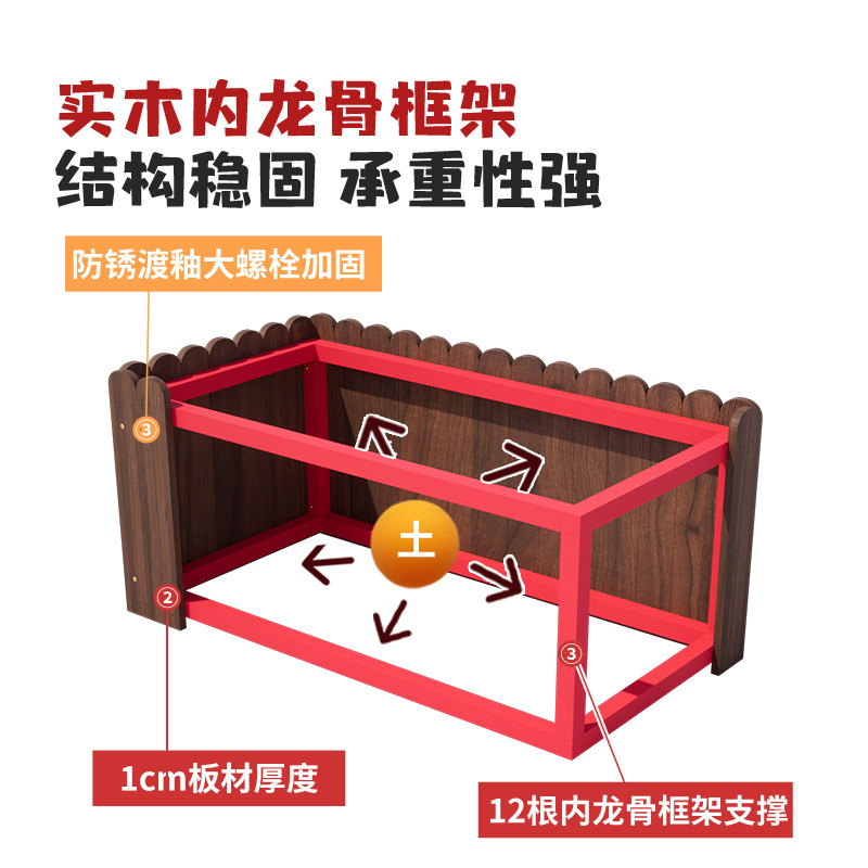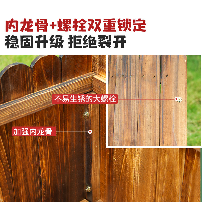 防腐木花箱长方形庭院花槽户外种菜盆碳化实木栅栏种植箱多肉花盆