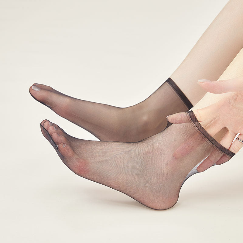 水晶丝袜短筒脚尖透明1d肉色黑女夏季中筒钢丝袜超薄隐形防滑袜子