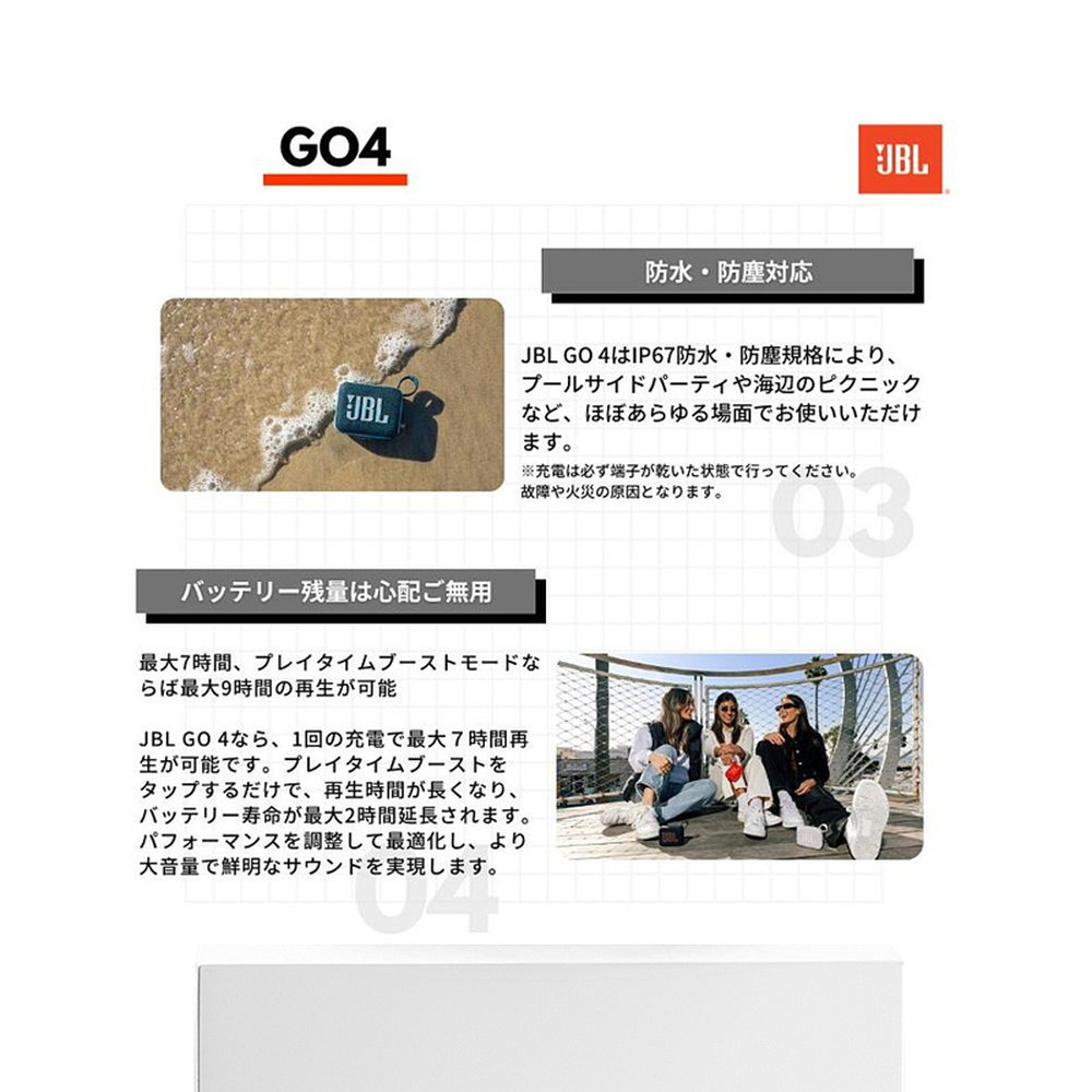日本直邮JBL GO4 便携式扬声器防水蓝牙 5.3无线户外海滩防尘高音