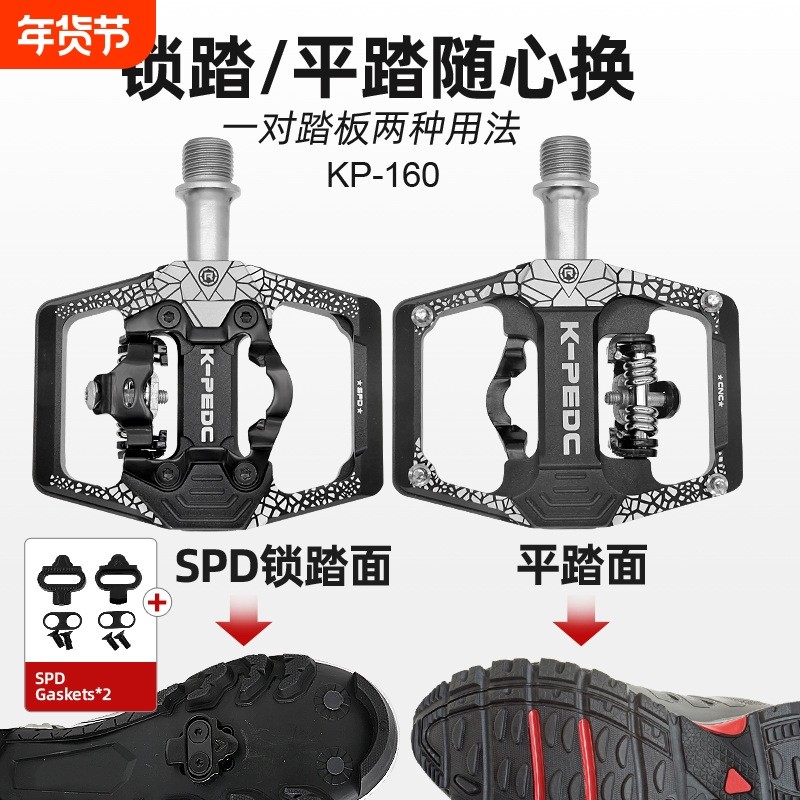 自行车脚踏SPD锁踏山地车铝合金培林自锁脚蹬平踏两用脚蹬踏板