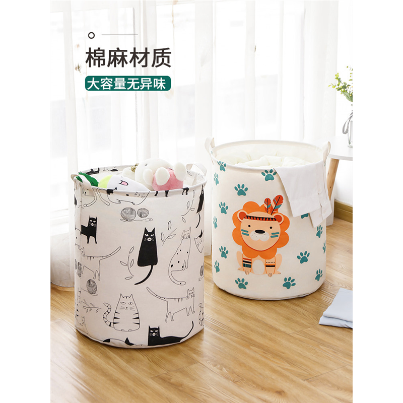 卡通ins简约可爱极简风英文家居脏衣篮收纳桶防水棉麻帆布框学生