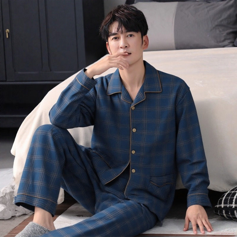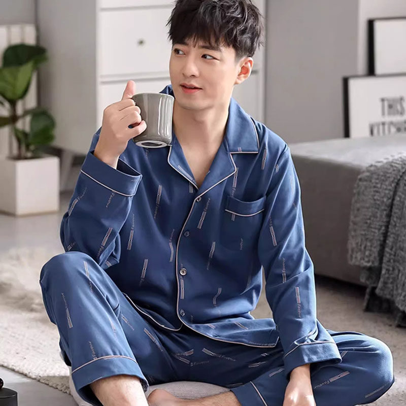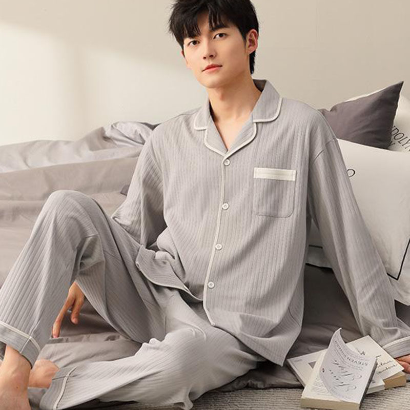 浪莎睡衣男春秋季棉质长袖青少年大码可外穿家居服两件套开衫舒适