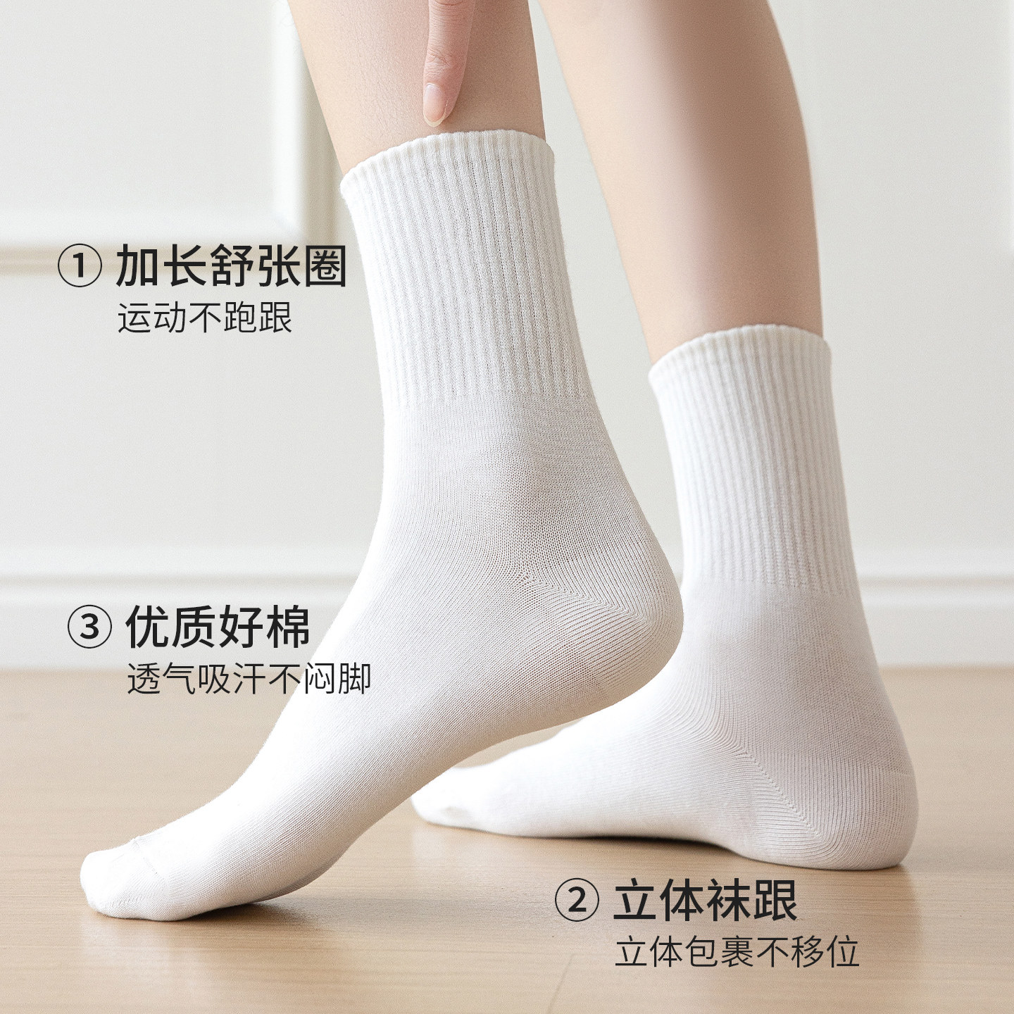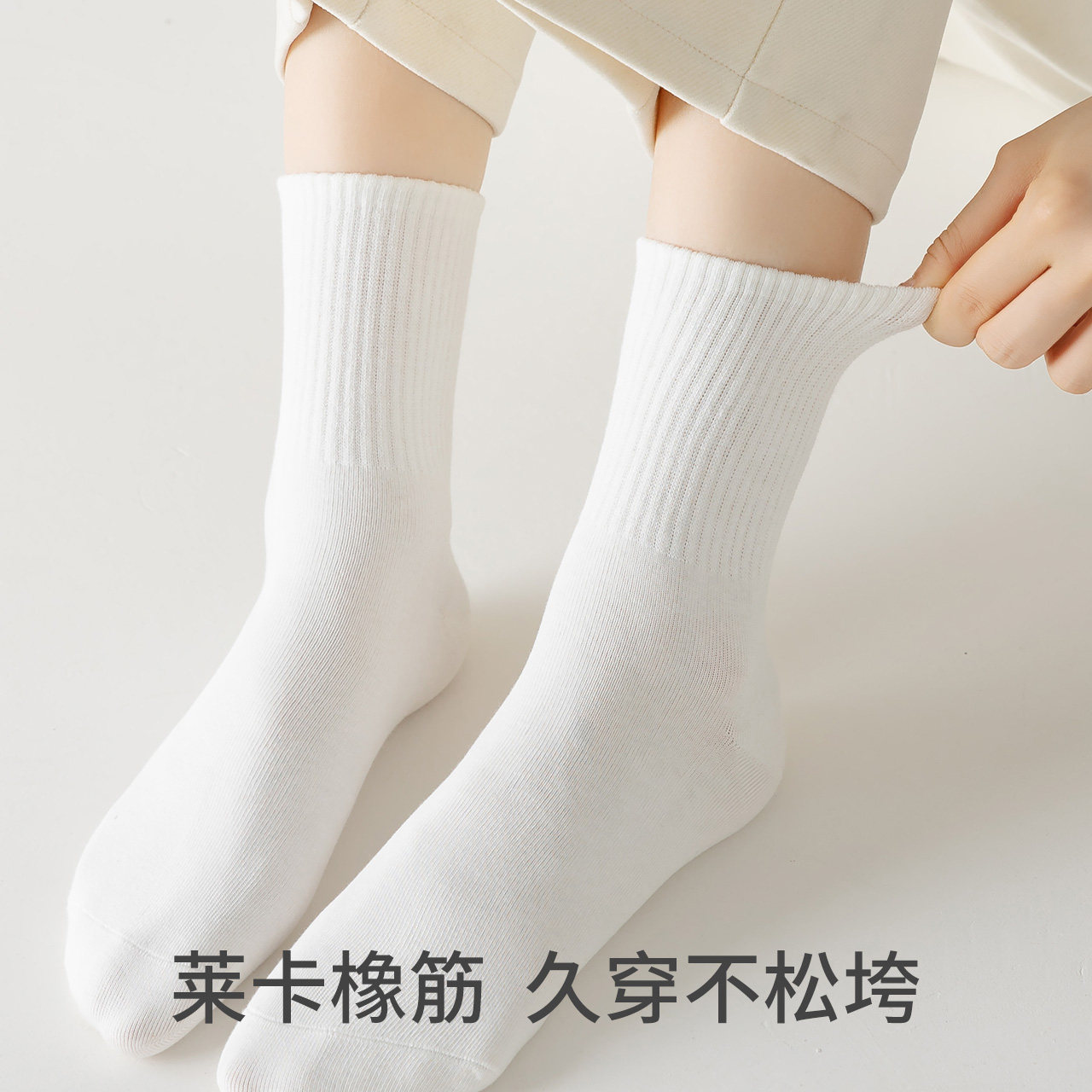 袜子女款纯棉中筒袜秋冬季抗菌防臭吸汗运动棉袜春秋款无骨短筒袜