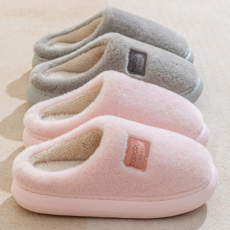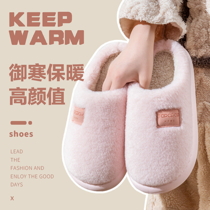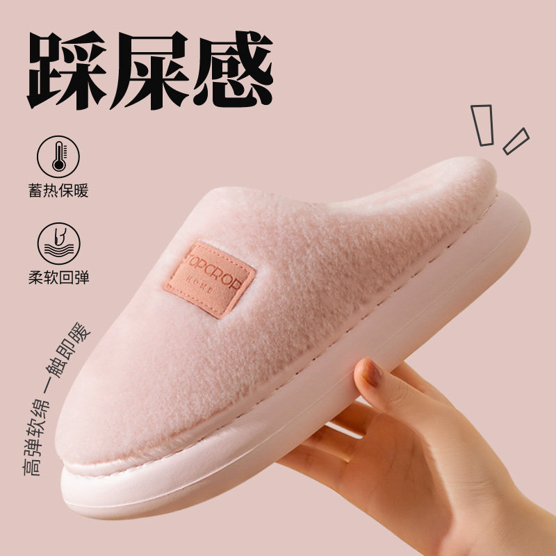 棉拖鞋女秋冬季新款室内家居软底防滑毛绒保暖加厚踩屎感简约拖鞋