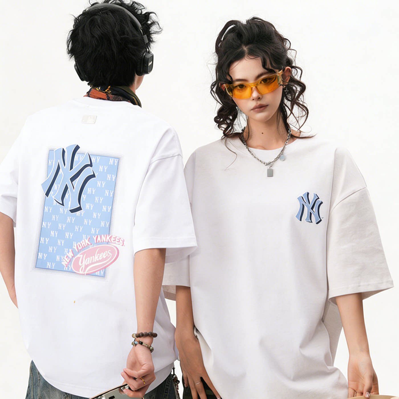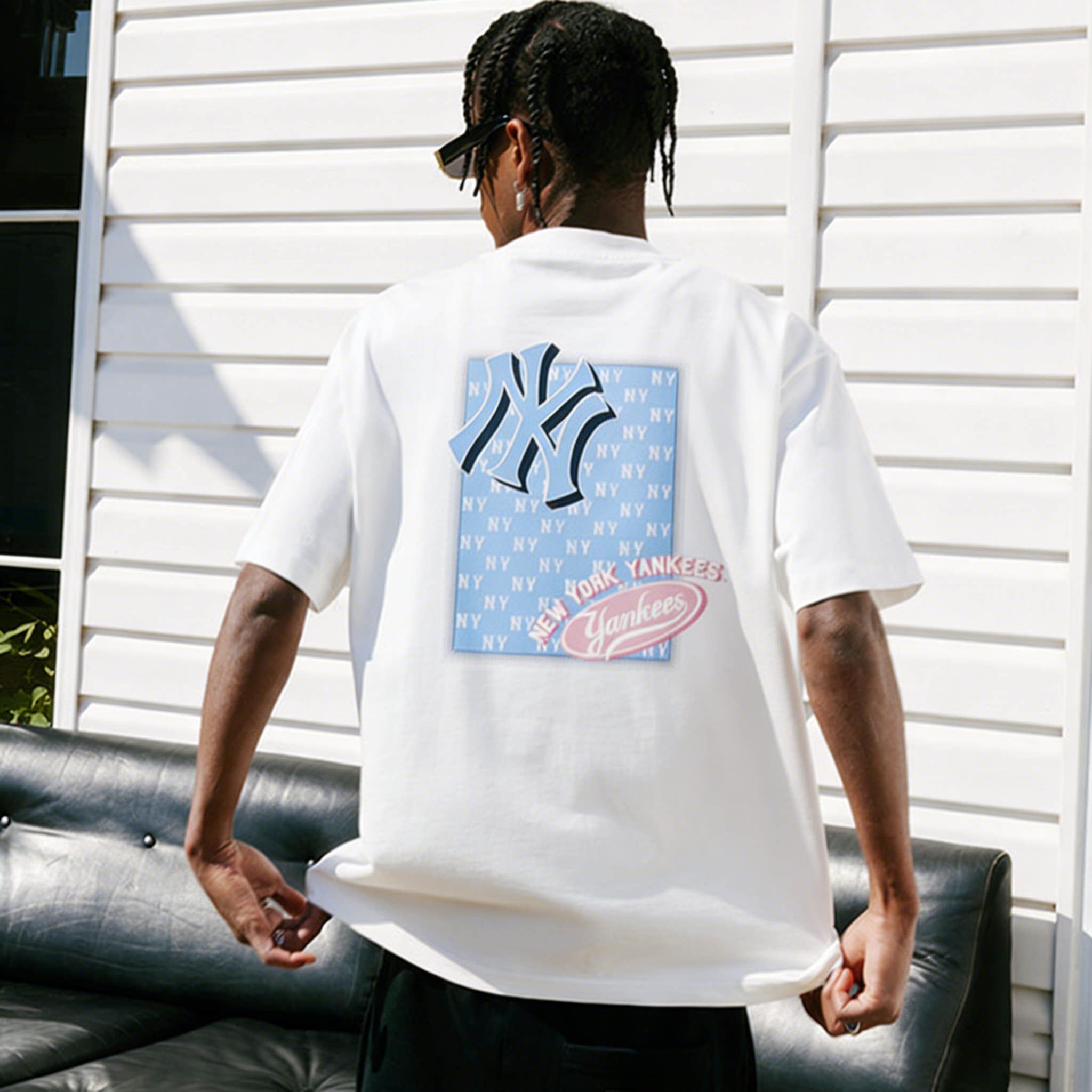 MLB官方 休闲T恤男装女装宽松透气运动服时尚复古短袖老花半袖潮