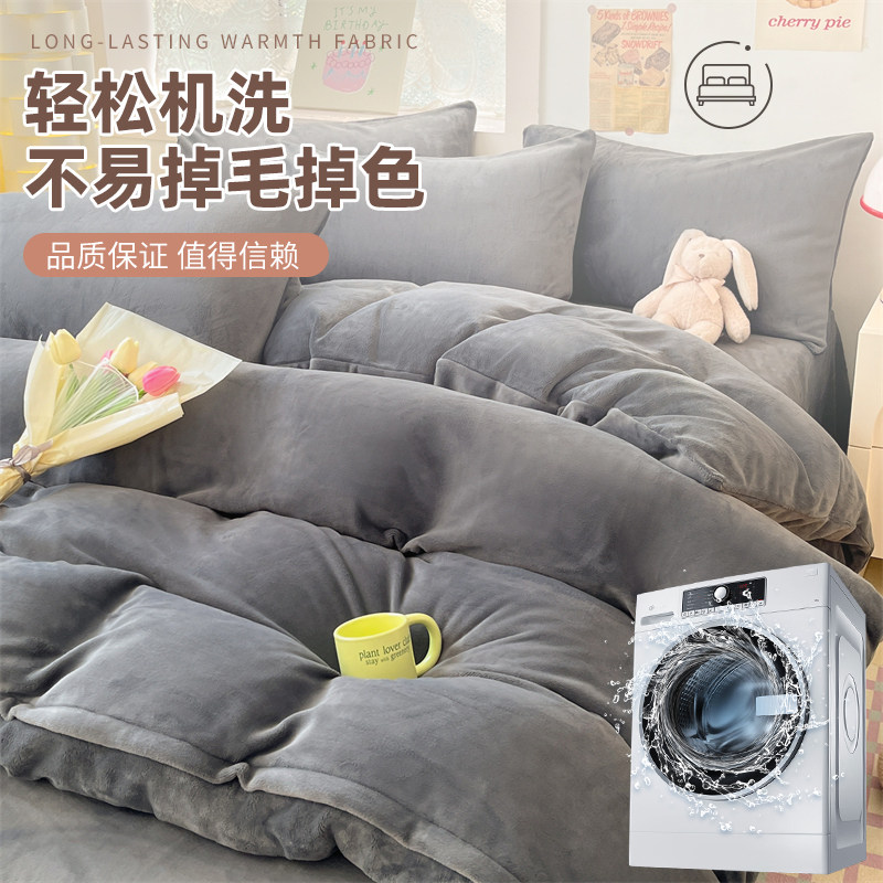 冬季加绒被套单件牛奶绒珊瑚绒宿舍单人单独毛绒被罩1.5米四件套3