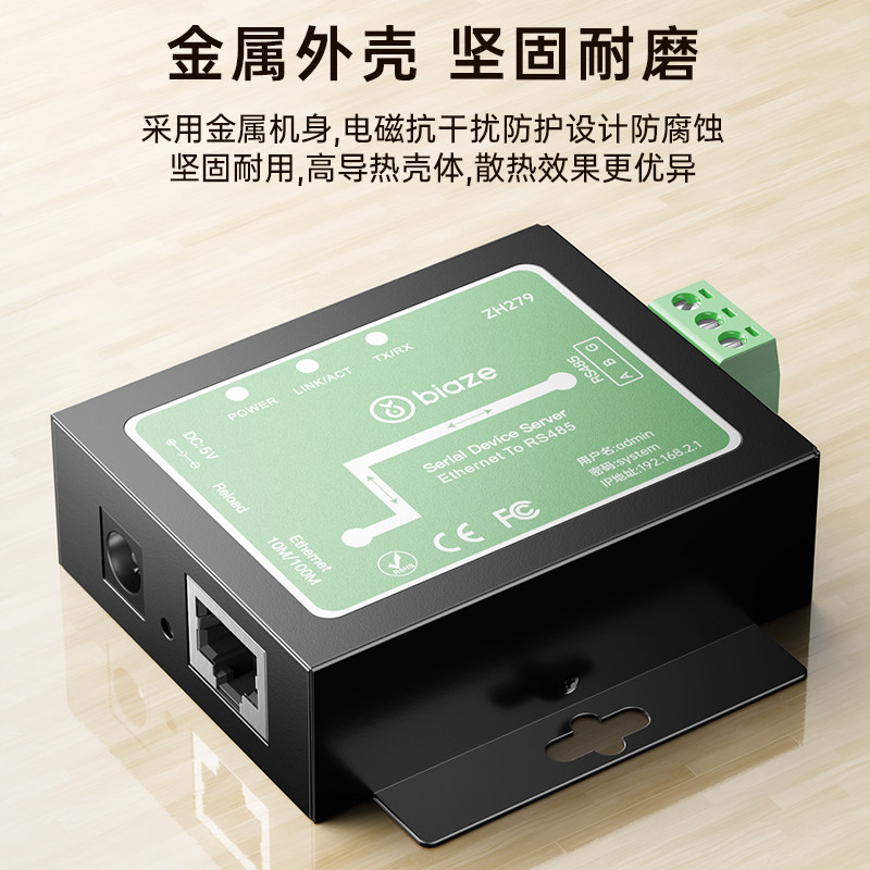 毕亚兹串口服务器RS485转以太网Modbus网关网口TCP/IP转串口物联网模块通信设备通讯WEB管理协助TCP232-304