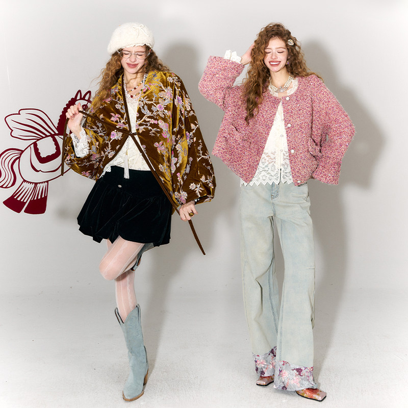 【现货】IHDXD 立体花朵针织小衫2026年春夏拼接长袖V领针织上衣