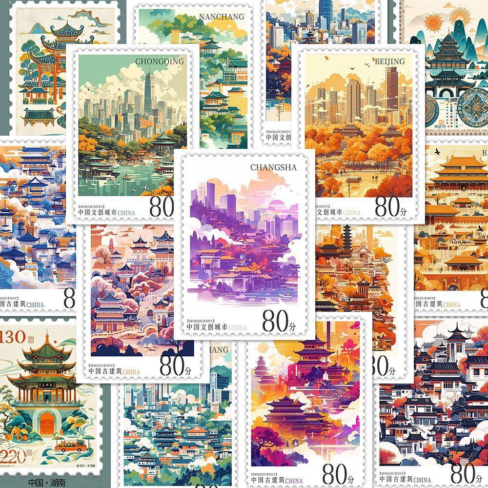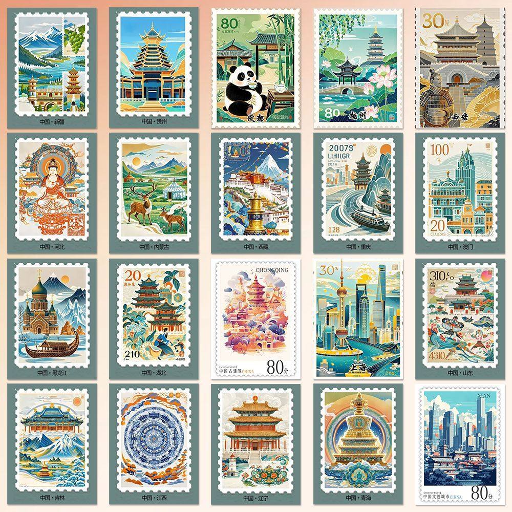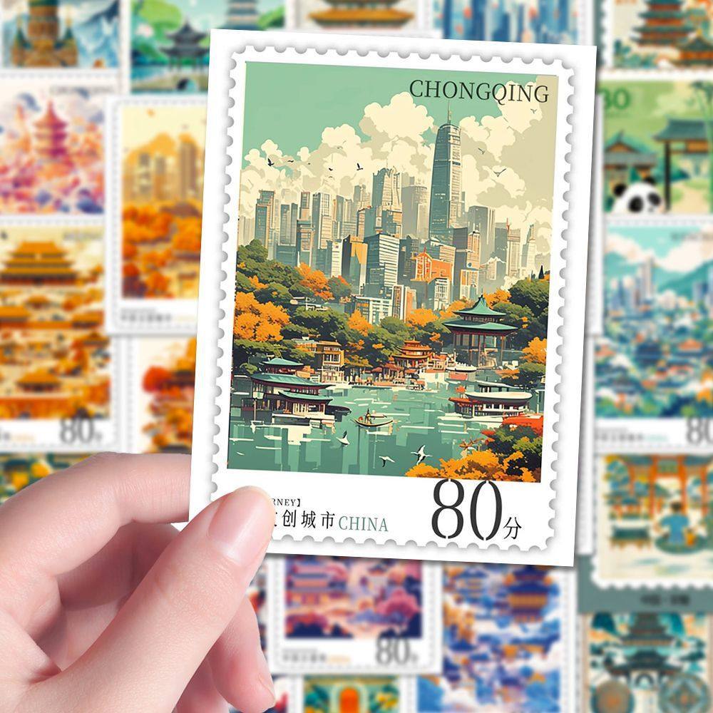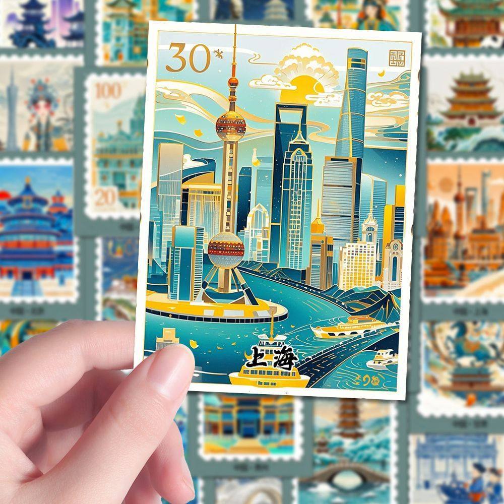 64张城市邮票贴画创意外出旅游纪念周边收藏装饰手机壳手账贴画