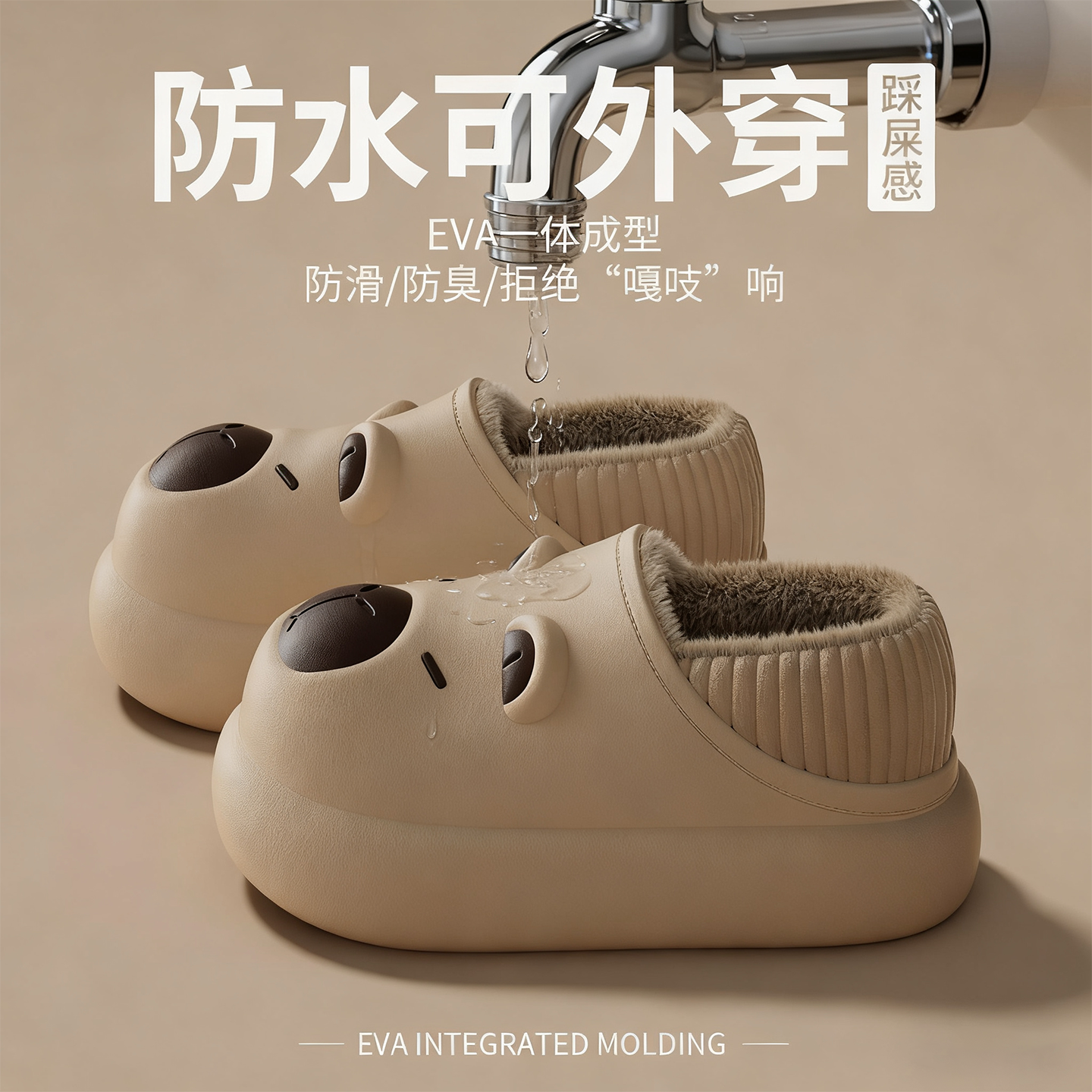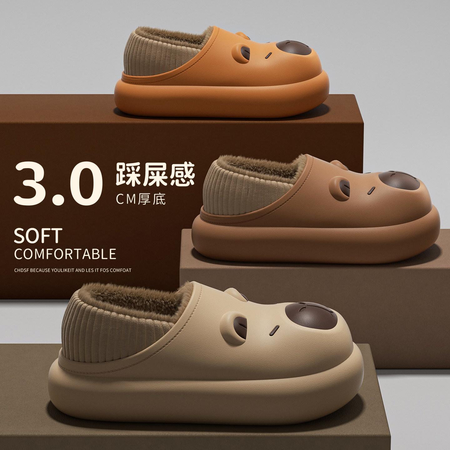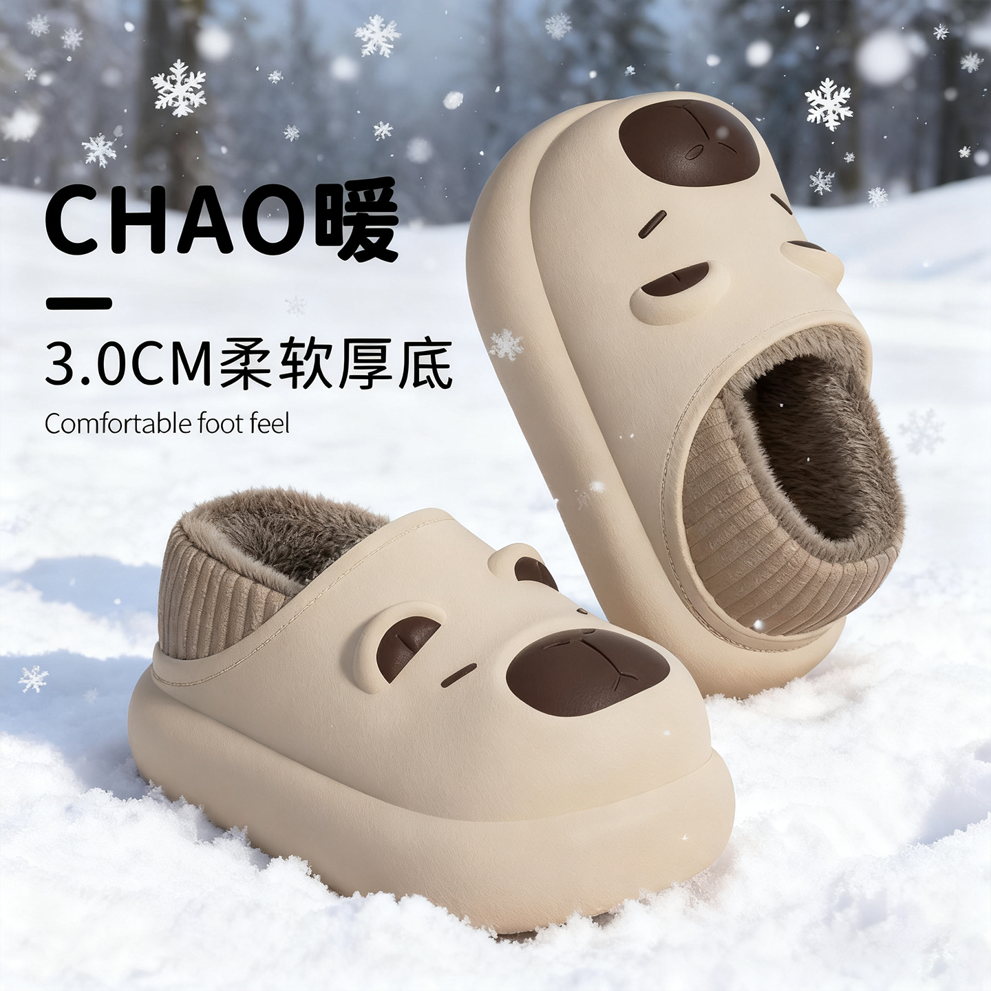 卡皮巴拉儿童棉拖鞋女童冬包跟2025新款家居保暖男孩防水防滑棉鞋