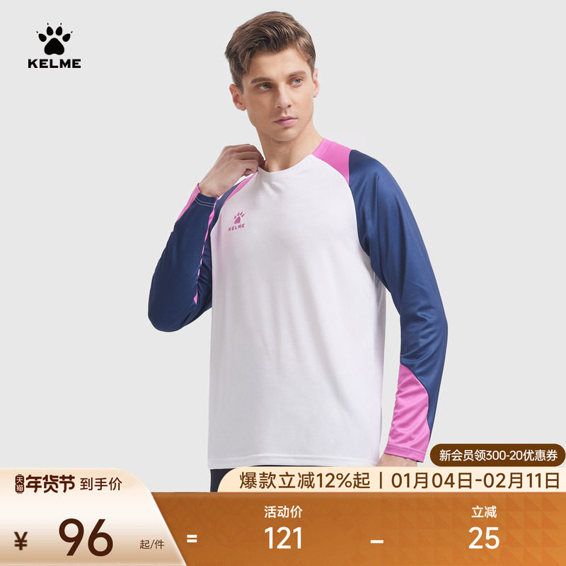 KELME卡尔美长袖T恤男2025秋季足球透气训练服圆领跑步运动上衣