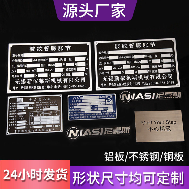 铭牌定制机器设备金属铭牌贴铝牌定做不锈钢标识牌腐蚀UV丝印标牌订做配电箱标识牌铭牌制作激光刻字PVC塑料