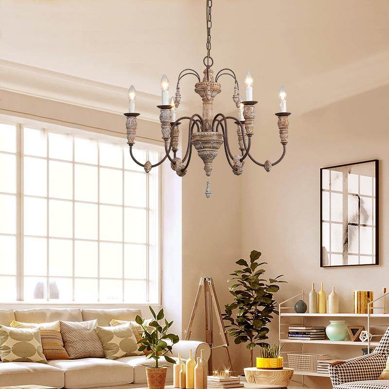 创意美式乡村法式复古木艺吊灯简约客厅餐厅卧室楼梯间复式楼吊灯