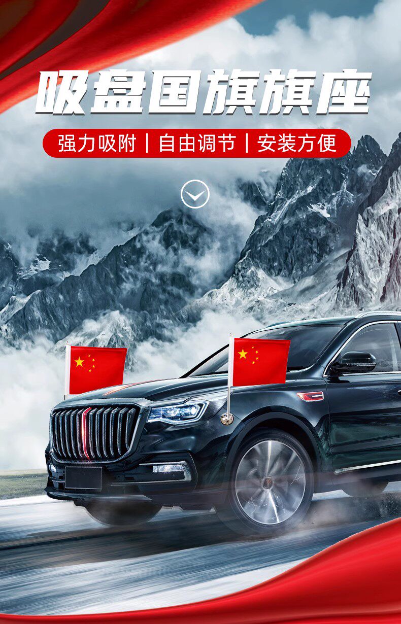 车载吸盘式旗杆五星红旗车外中国国旗头车队装饰免打孔婚车饰迎宾