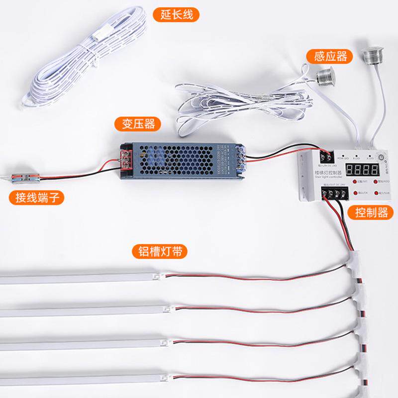 楼梯踏步灯智能感应网红台阶灯别墅室内免布线梯步灯带总线款灯条