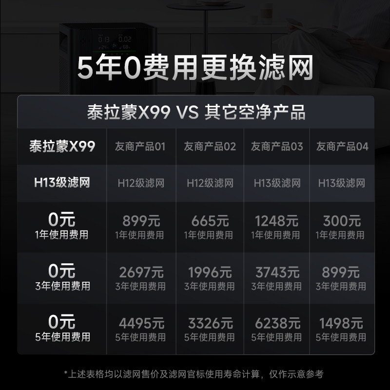 【滤网5年0费用】美国泰拉蒙X99专业空气净化器除甲醛除菌净化机