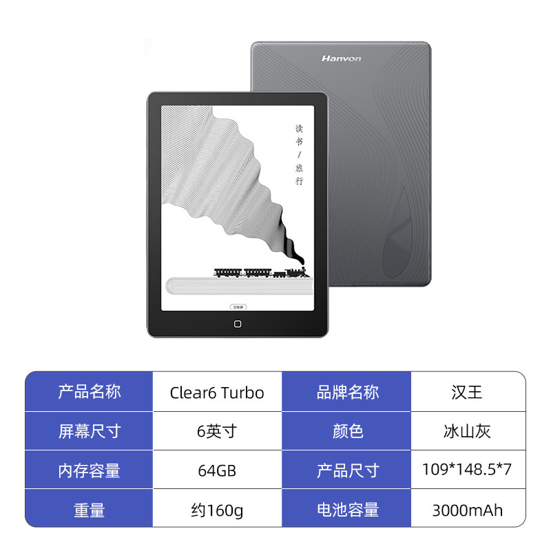 【高通八核】汉王clear6 turbo 智能阅读器6寸电子书墨水屏电子纸护眼电子阅览器300ppi电纸书水墨屏小说漫画